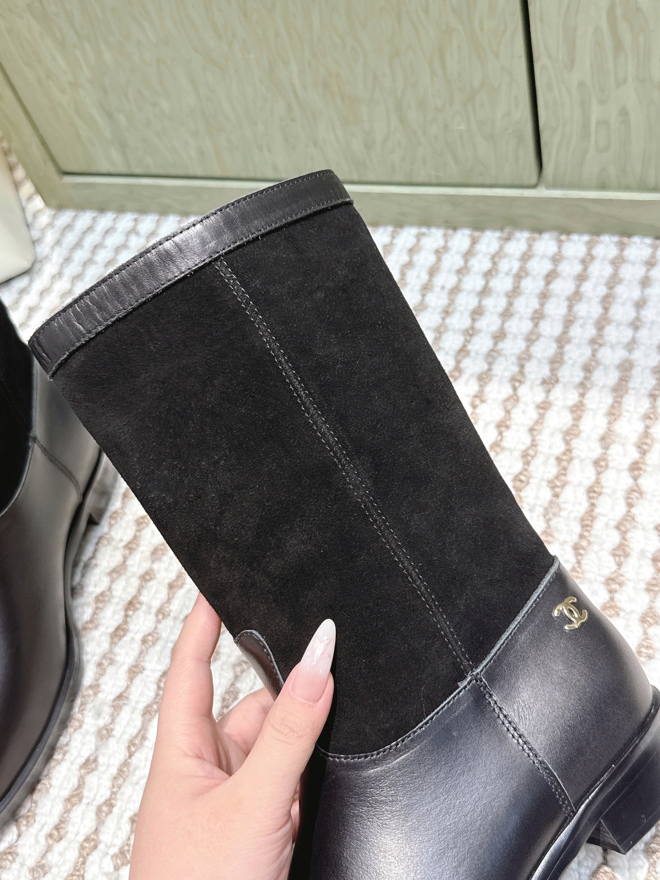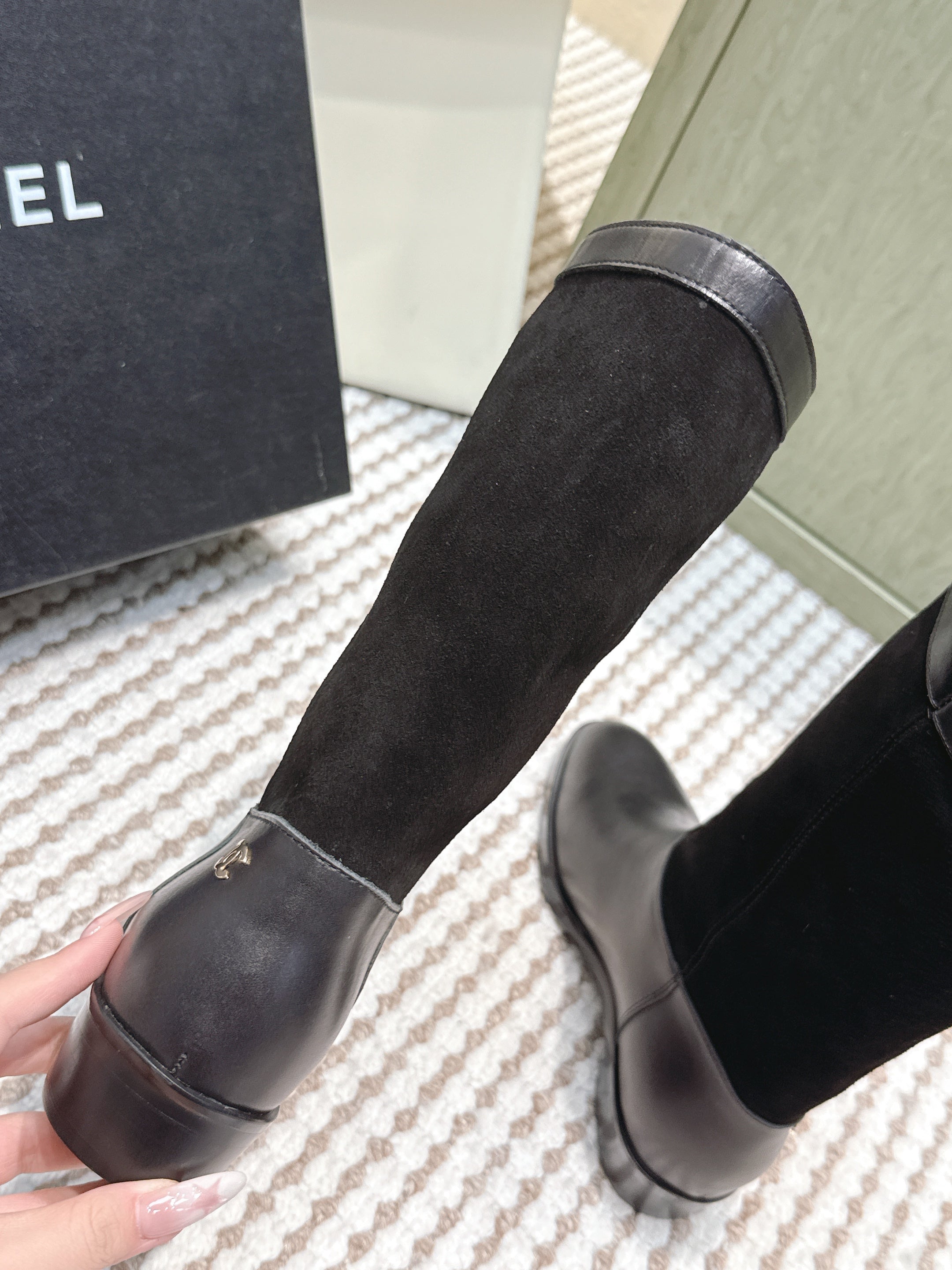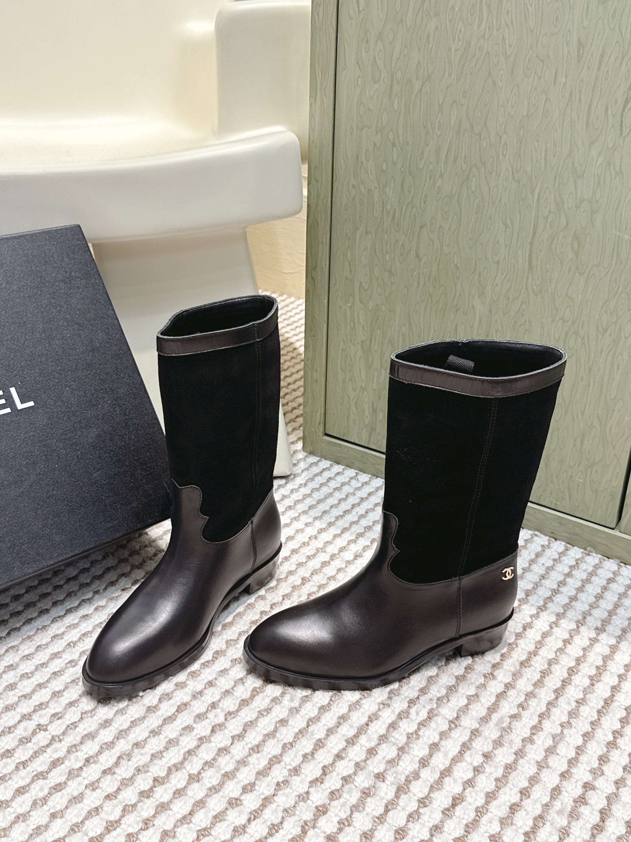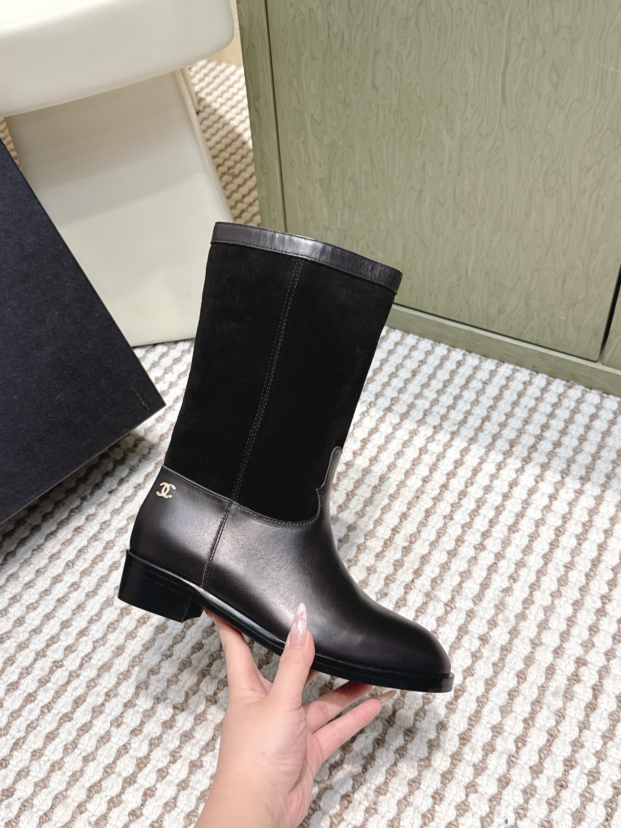 CHANEL 25S MID-CALF BOOTS IN BLACK SUEDE MIX CALFSKIN