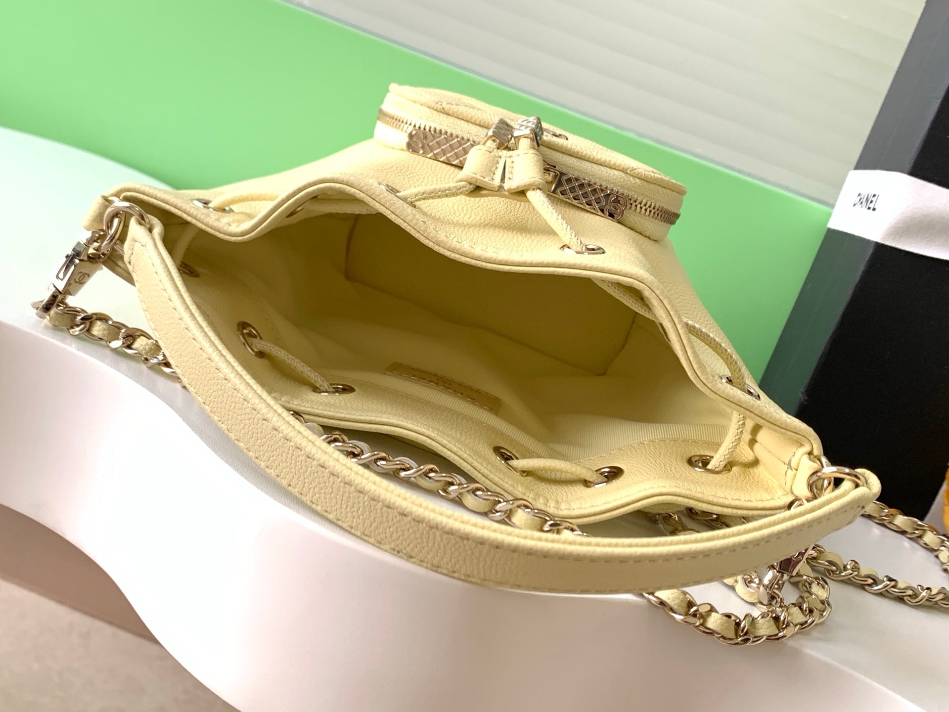 CHANEL 25S MINI BUCKET BAG 12 IN YELLOW CALFSKIN GOLD HARDWARE