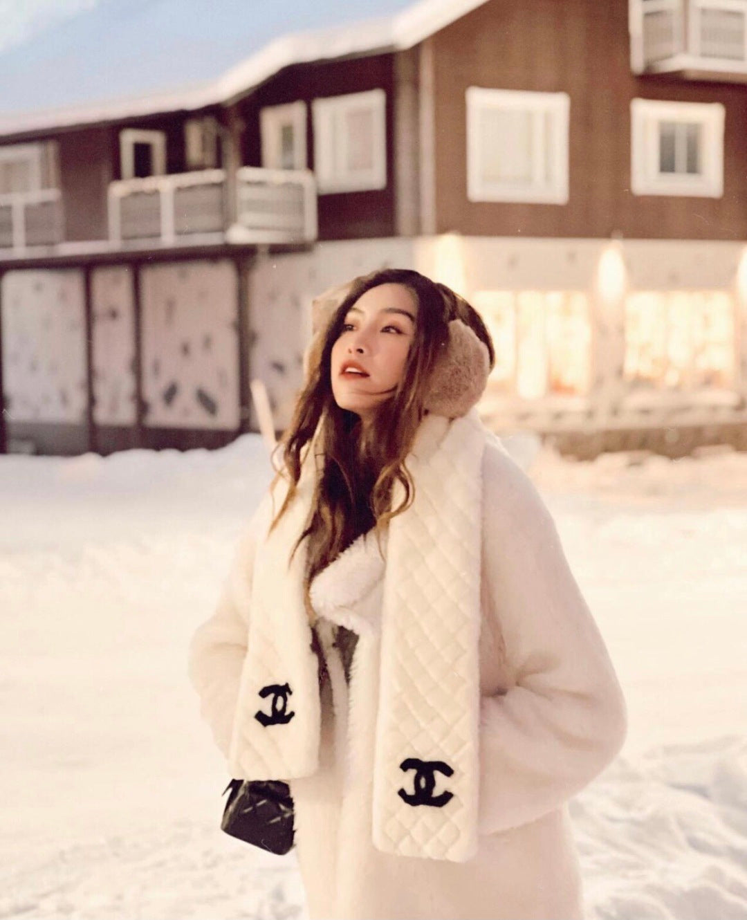 CHANEL 25S SCARF 120 IN FAUX FUR 876357