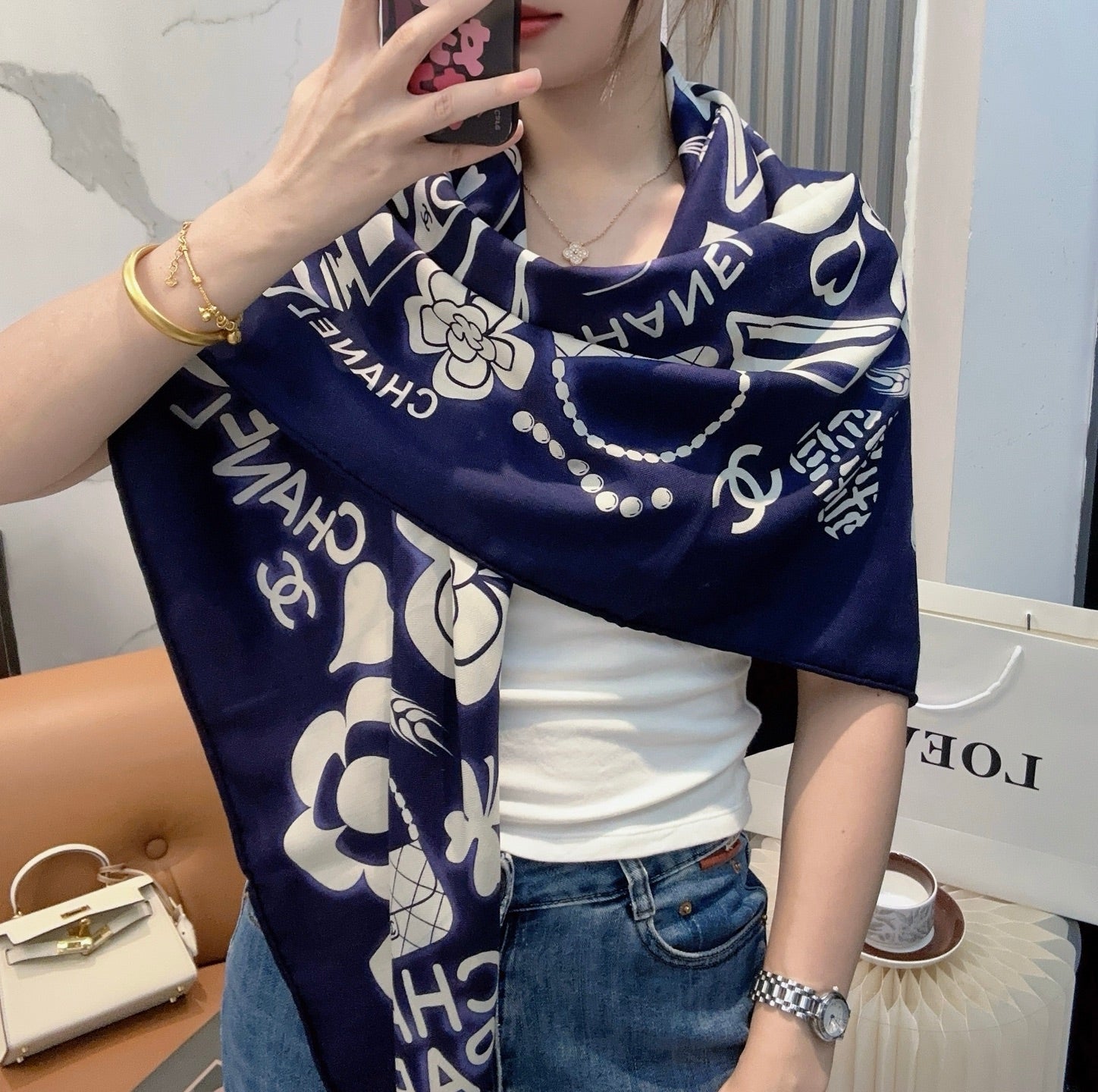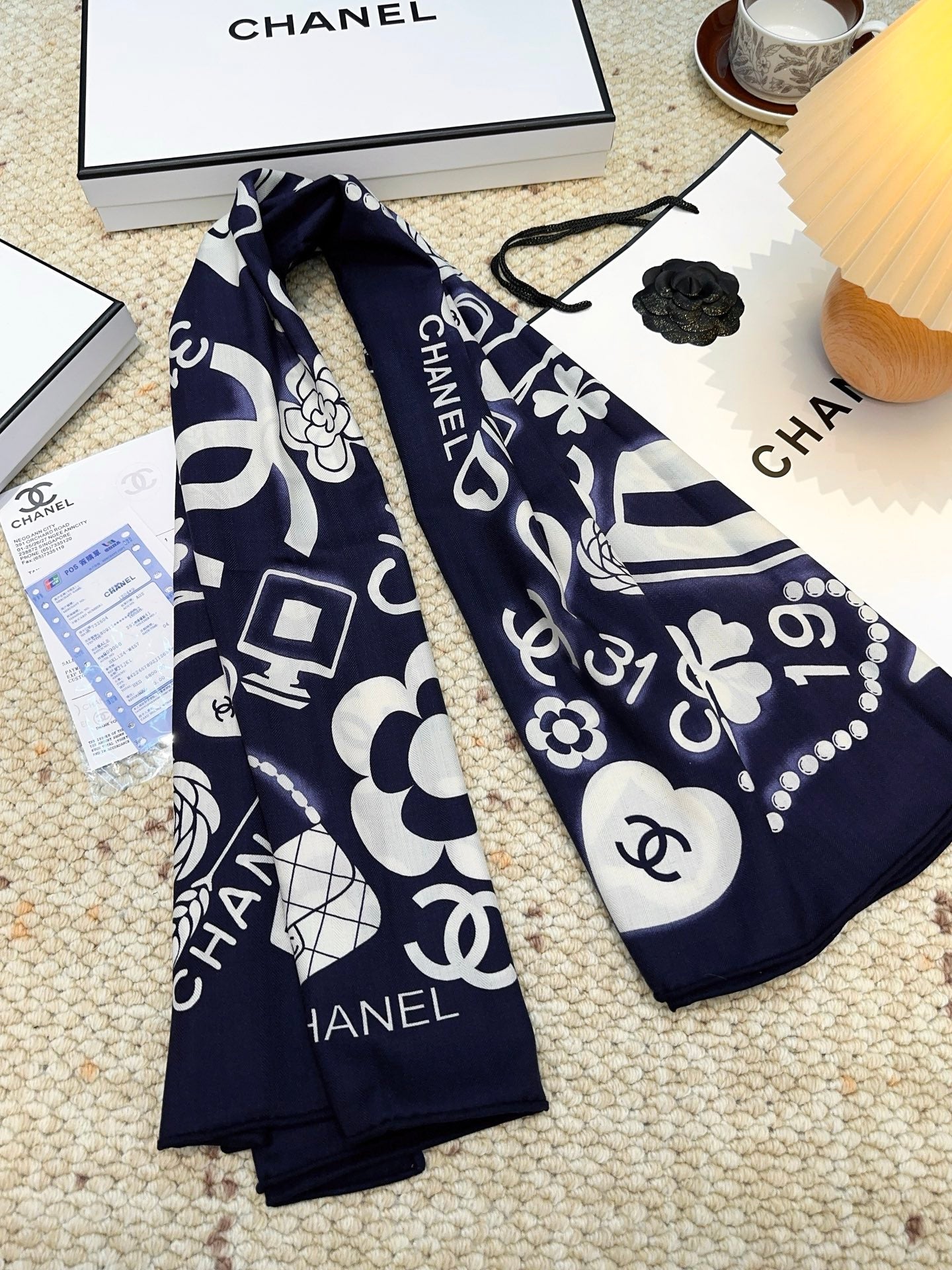 CHANEL 25S SCARF 140 IN SILK AND CASHMERE 881853