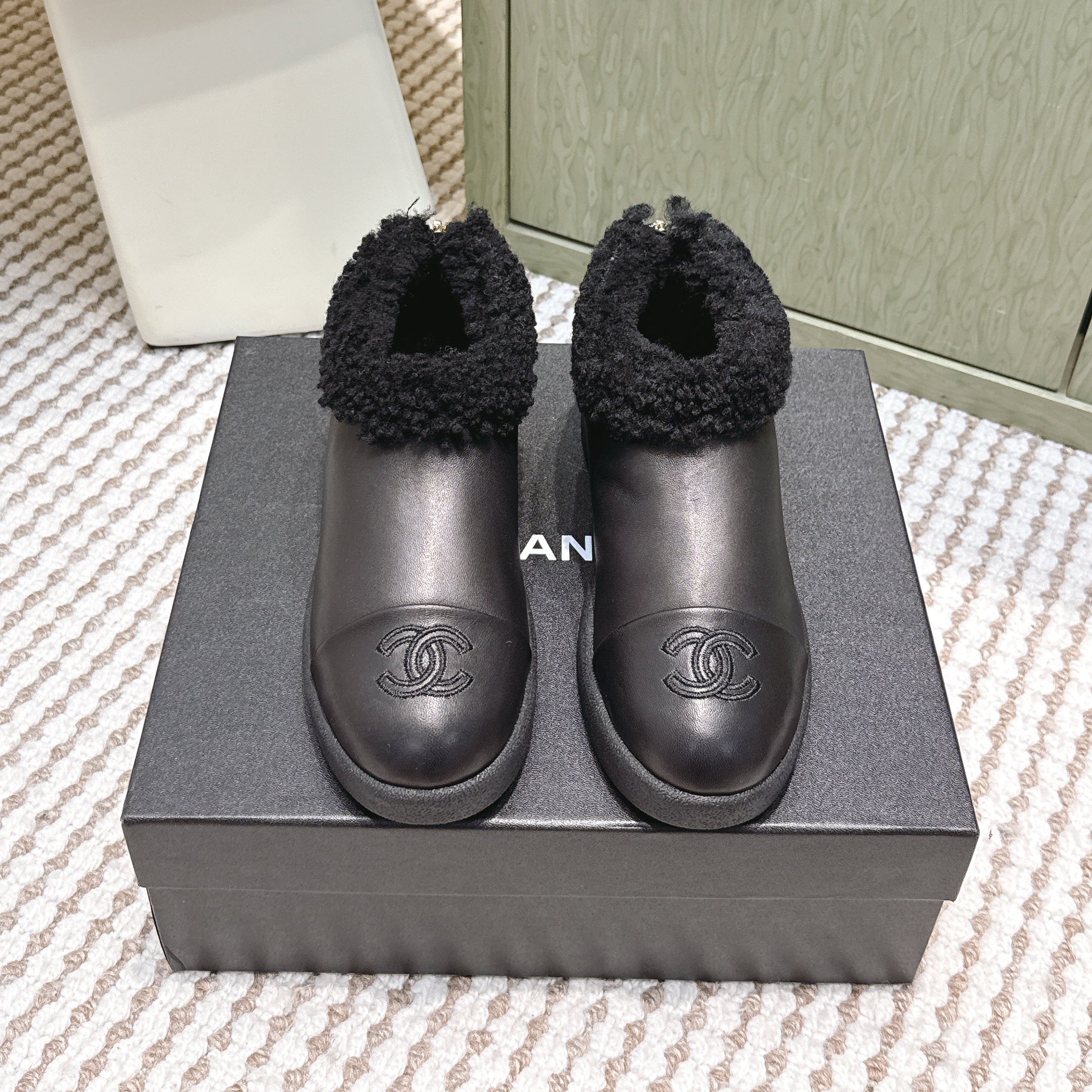 CHANEL 25S SHORT BOOTS IN BLACK CALFSKIN WITH SHEEPSKIN LINING