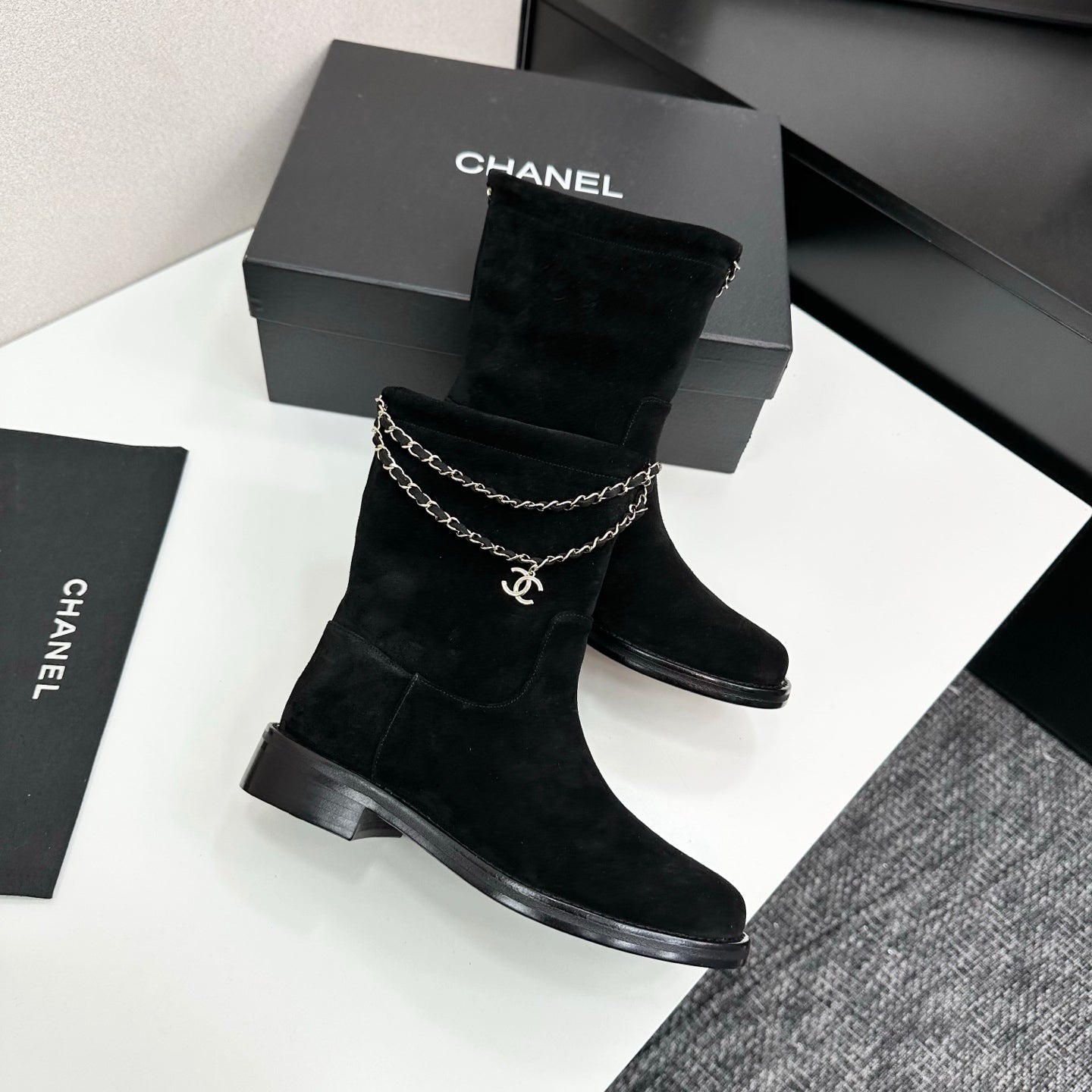 CHANEL 25S SHORT BOOTS IN BLACK SUEDE SILVER HARDWRE