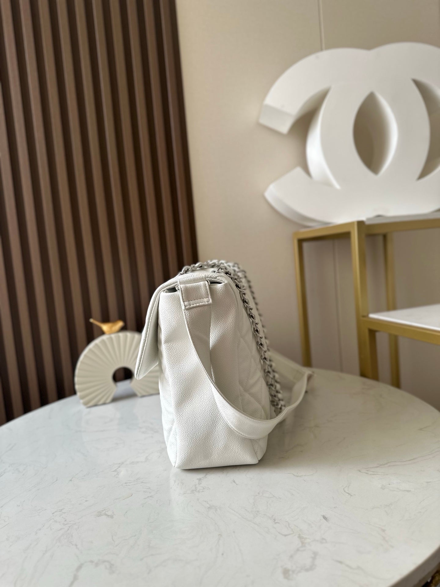 CHANEL 25S SHOULDER BAG 34 IN WHITE CAVIAR WITH SILVER HARDWARE