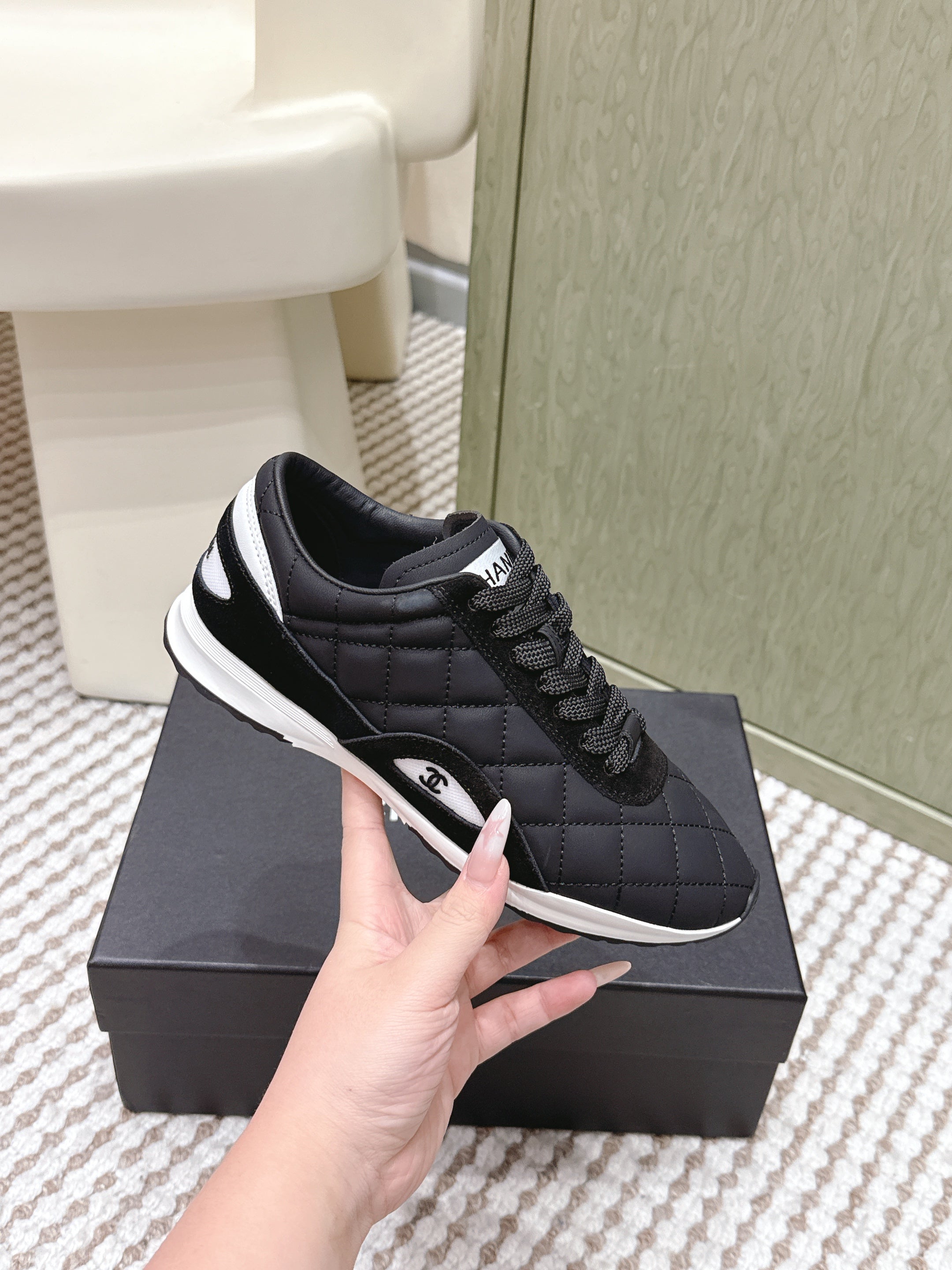 CHANEL 25S SNEAKERS IN BLACK CALFSKIN AND SUEDE