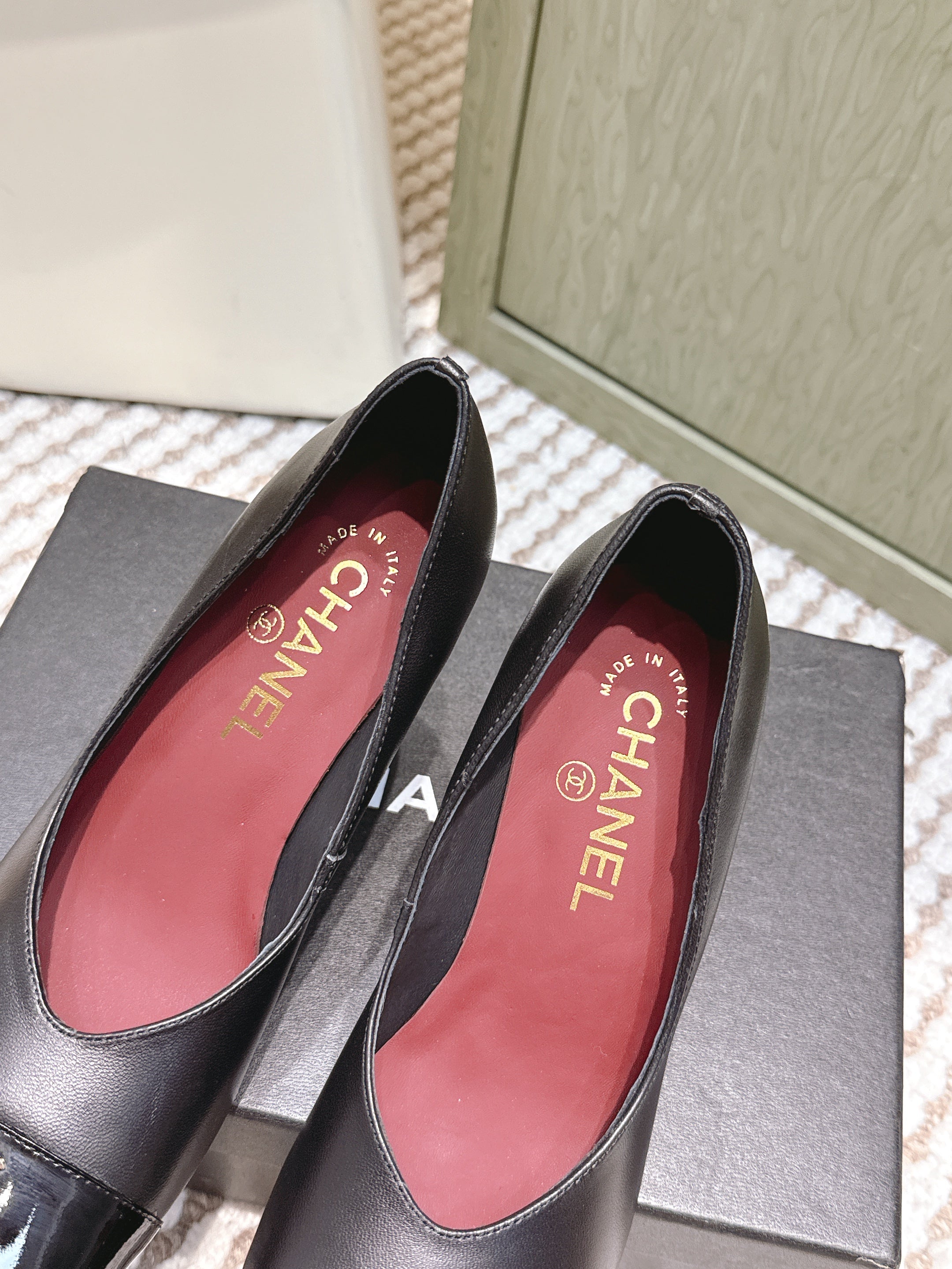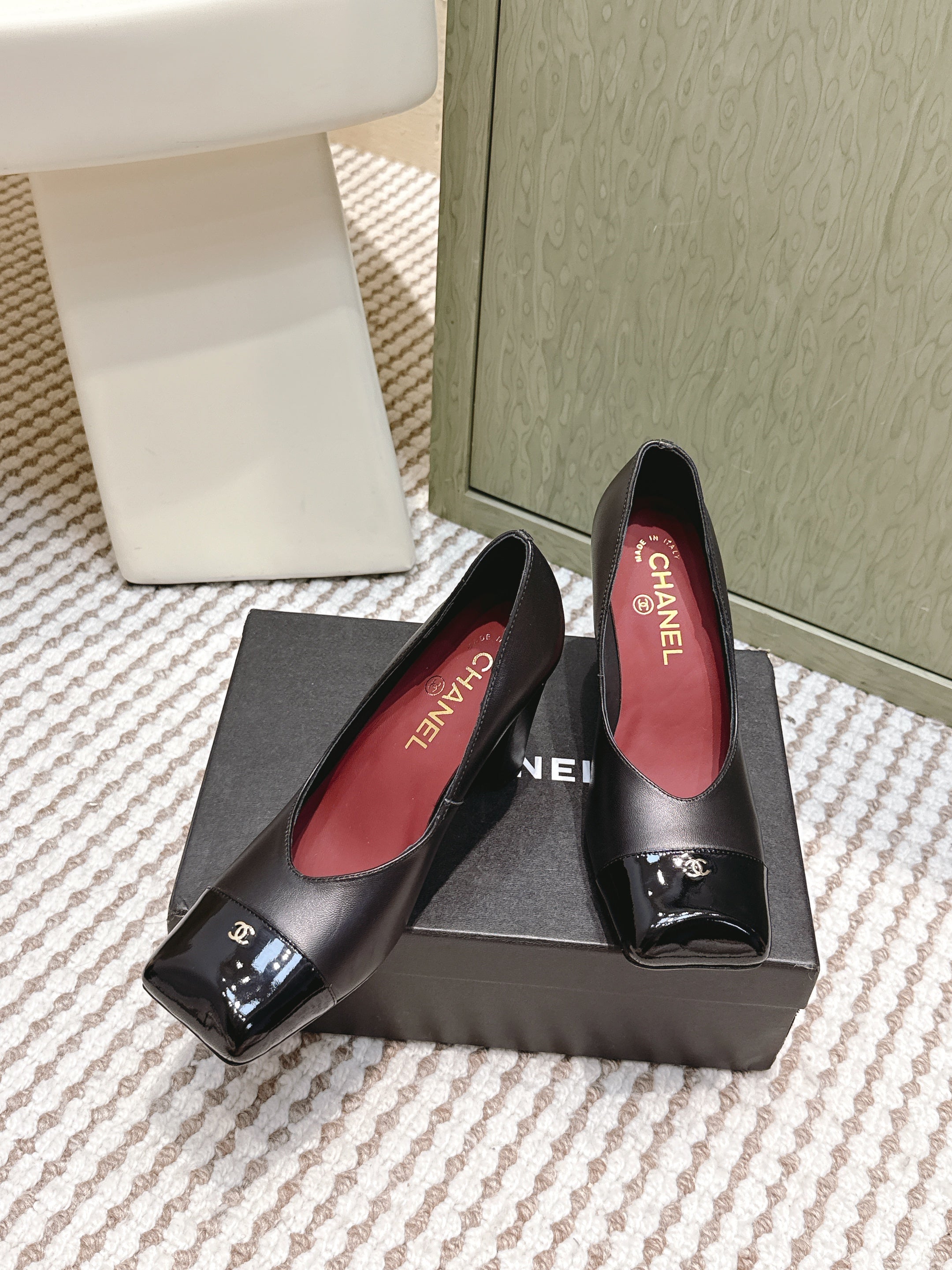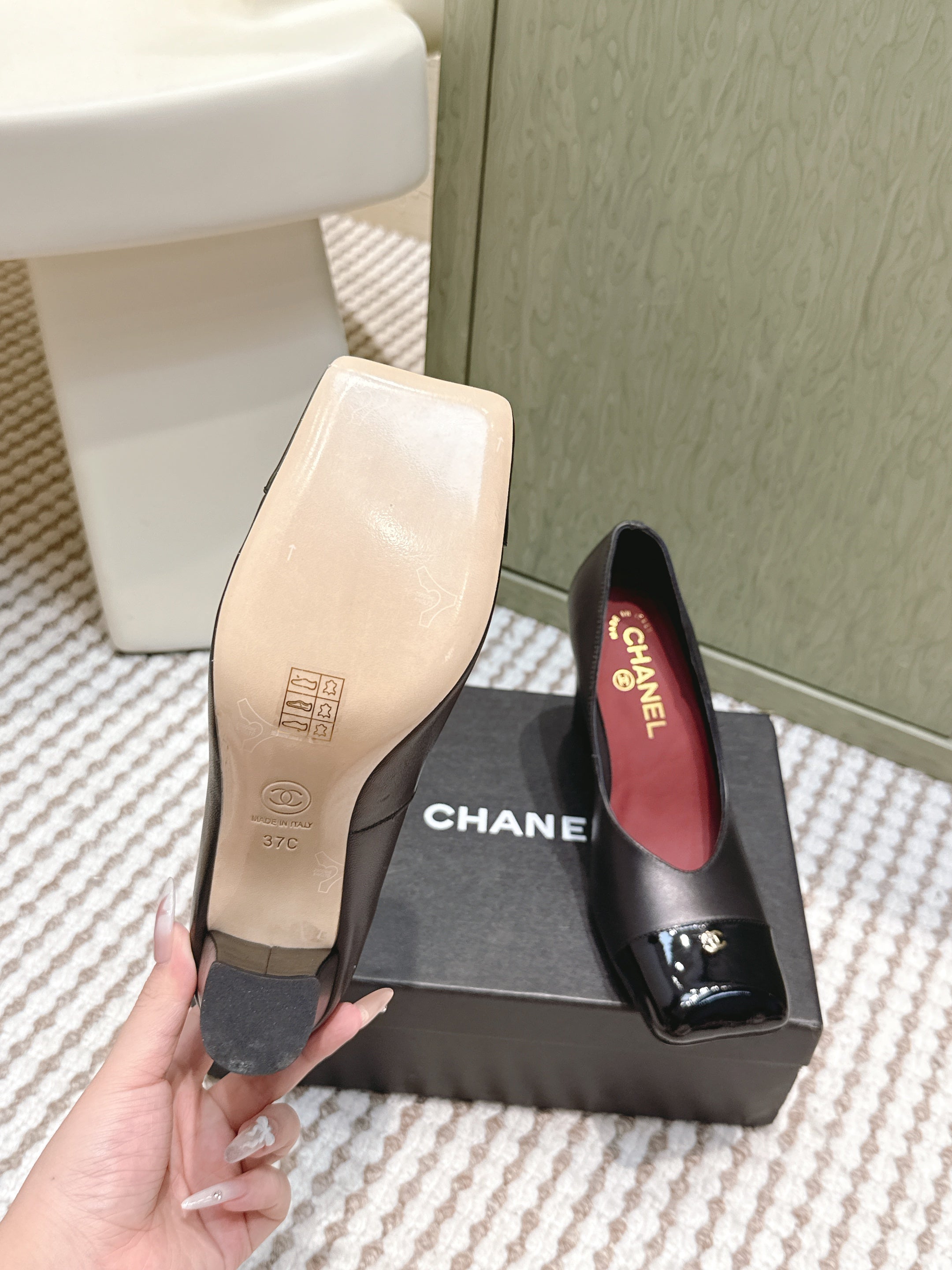 CHANEL 25S SQUARE-TOE HIGH HEELS 90MM IN BLACK CALFSKIN
