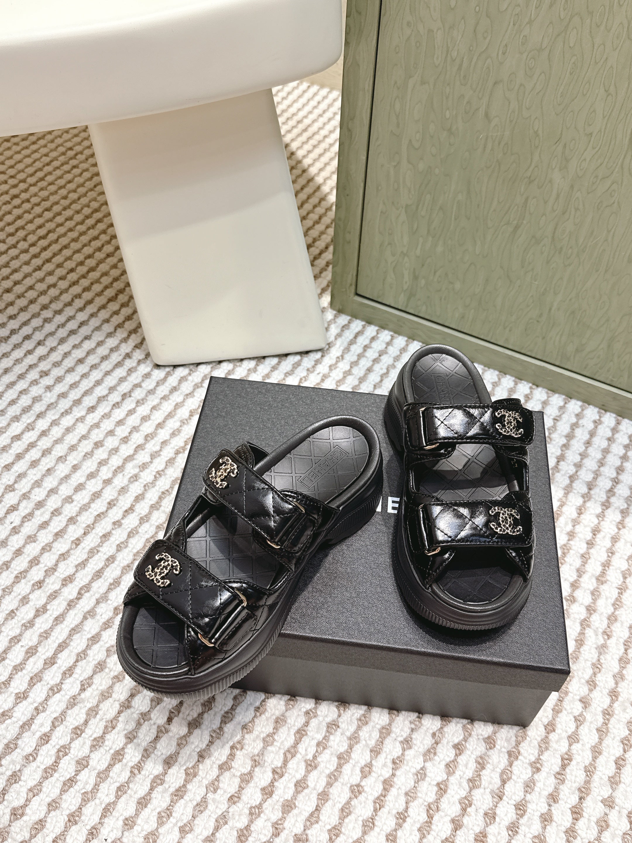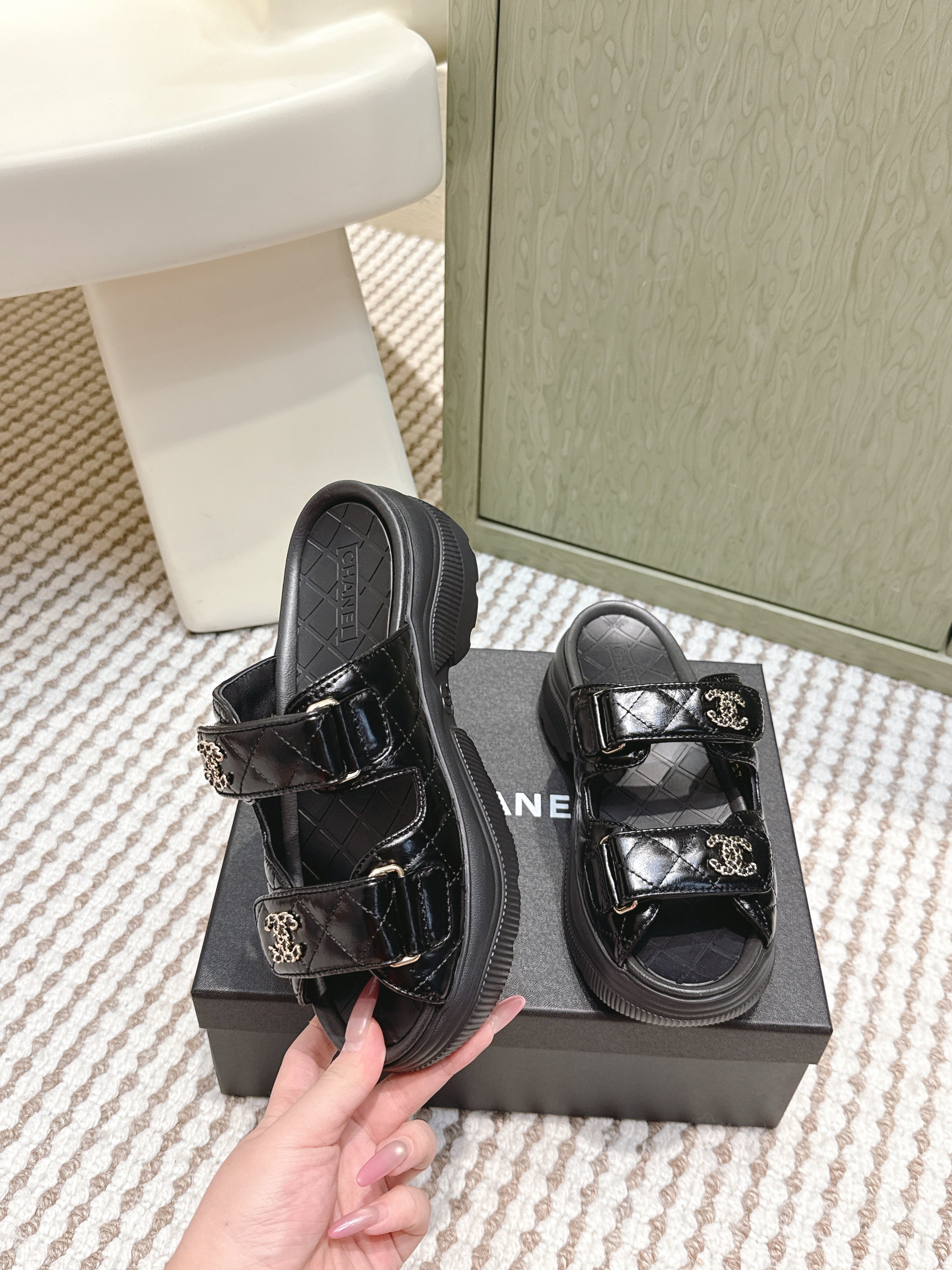 CHANEL 25S STRAP SANDALS IN BLACK PATENT CALFSKIN SILVER HARDWARE