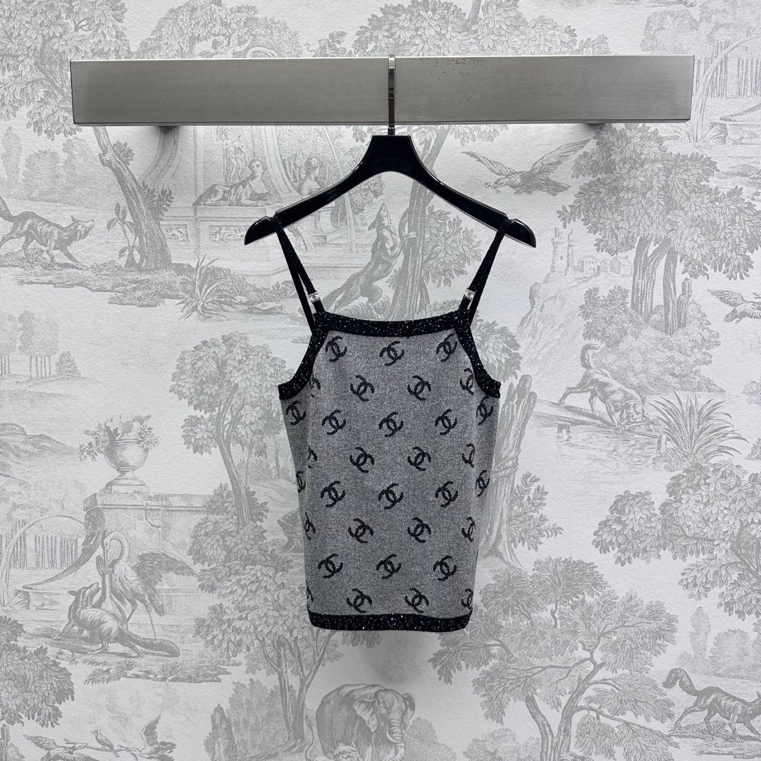 CHANEL CAMISOLE WITH LOGO DETAIL IN GREY