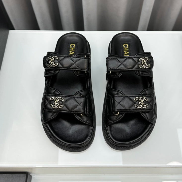 dad sandals black lambskin mules