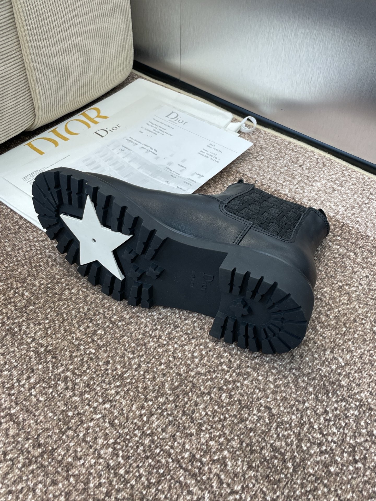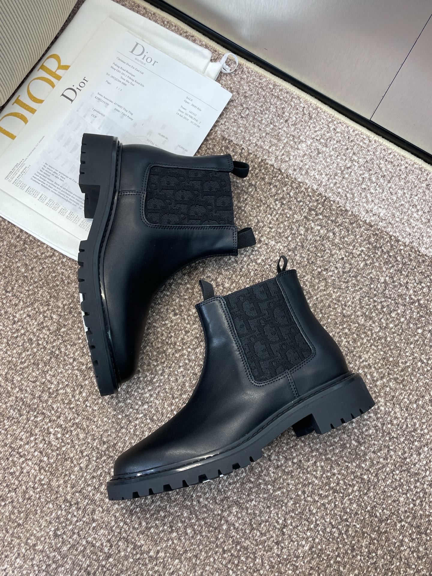 DIOR 25S D-QUEST CHELSEA ANKLE BOOTS 25MM IN BLACK CALFSKIN AND CANVAS