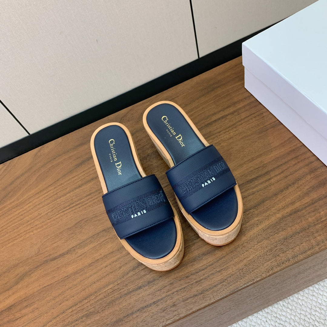 DIOR 25S DWAY WEDGE SLIDE 90 MM IN DEEP NAVY BLUE CALFSKIN