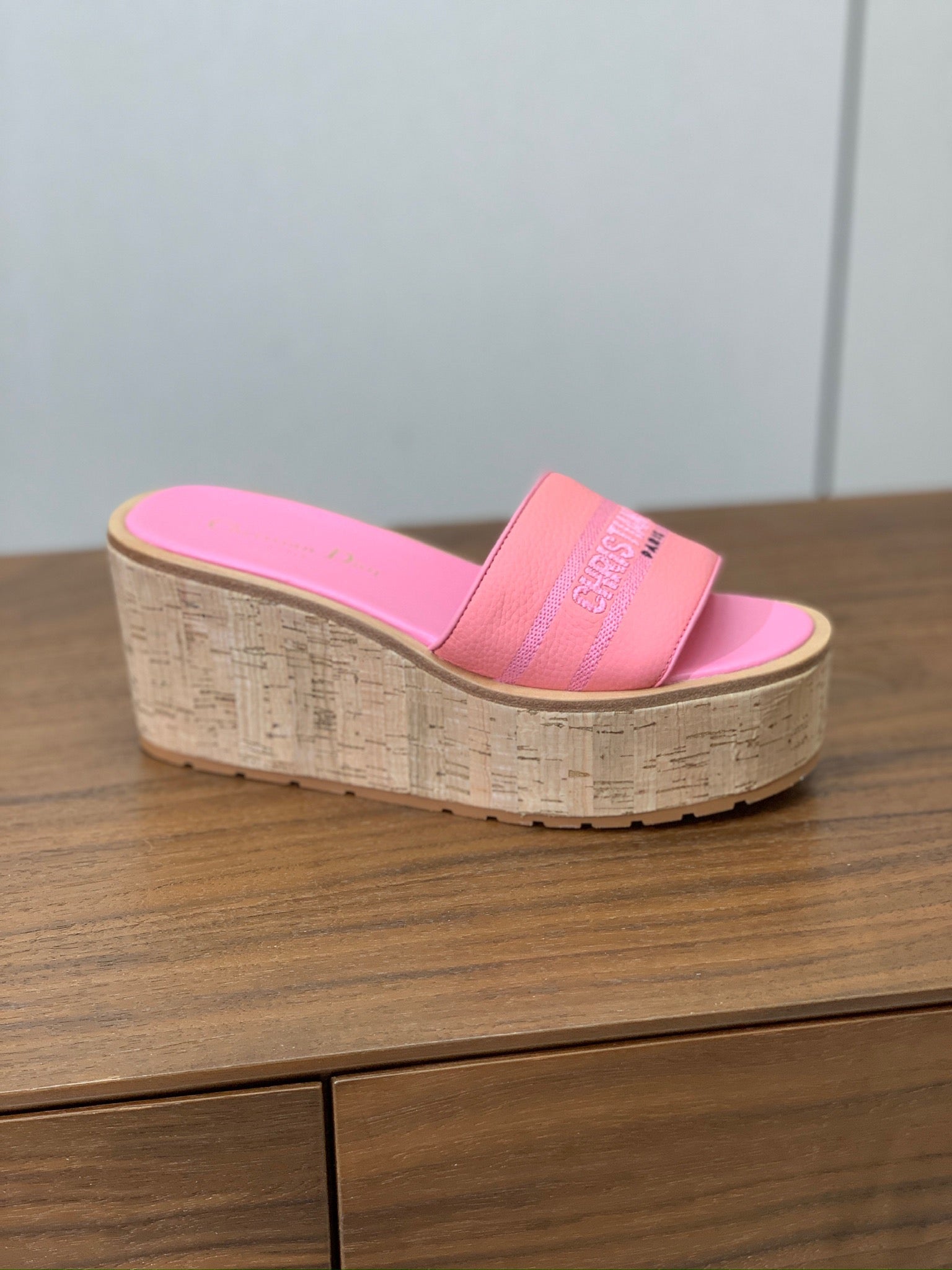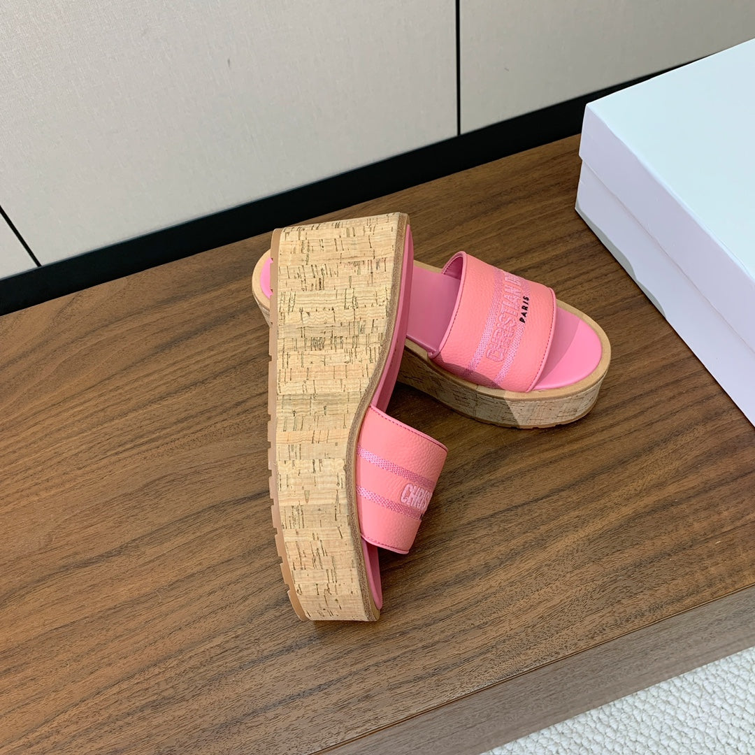 DIOR 25S DWAY WEDGE SLIDE 90 MM IN PINK CALFSKIN