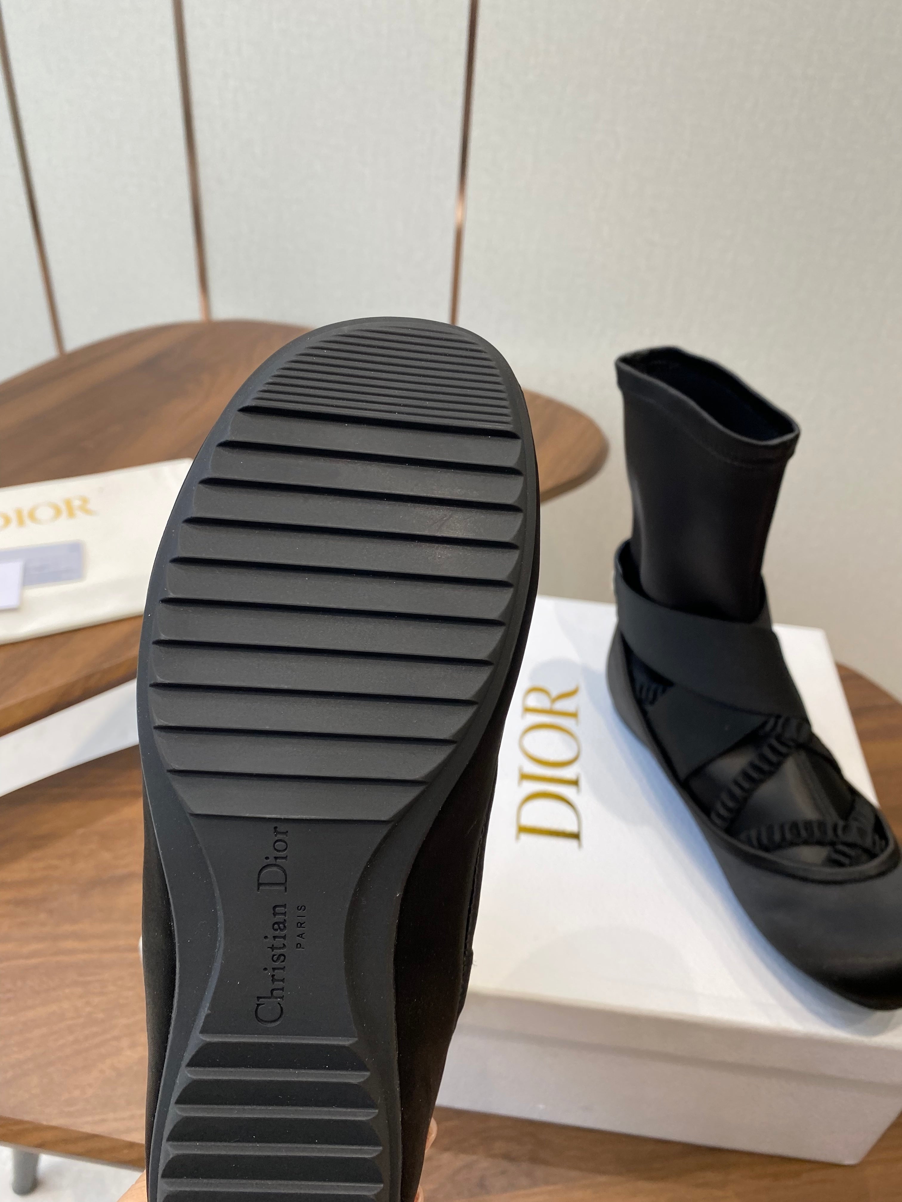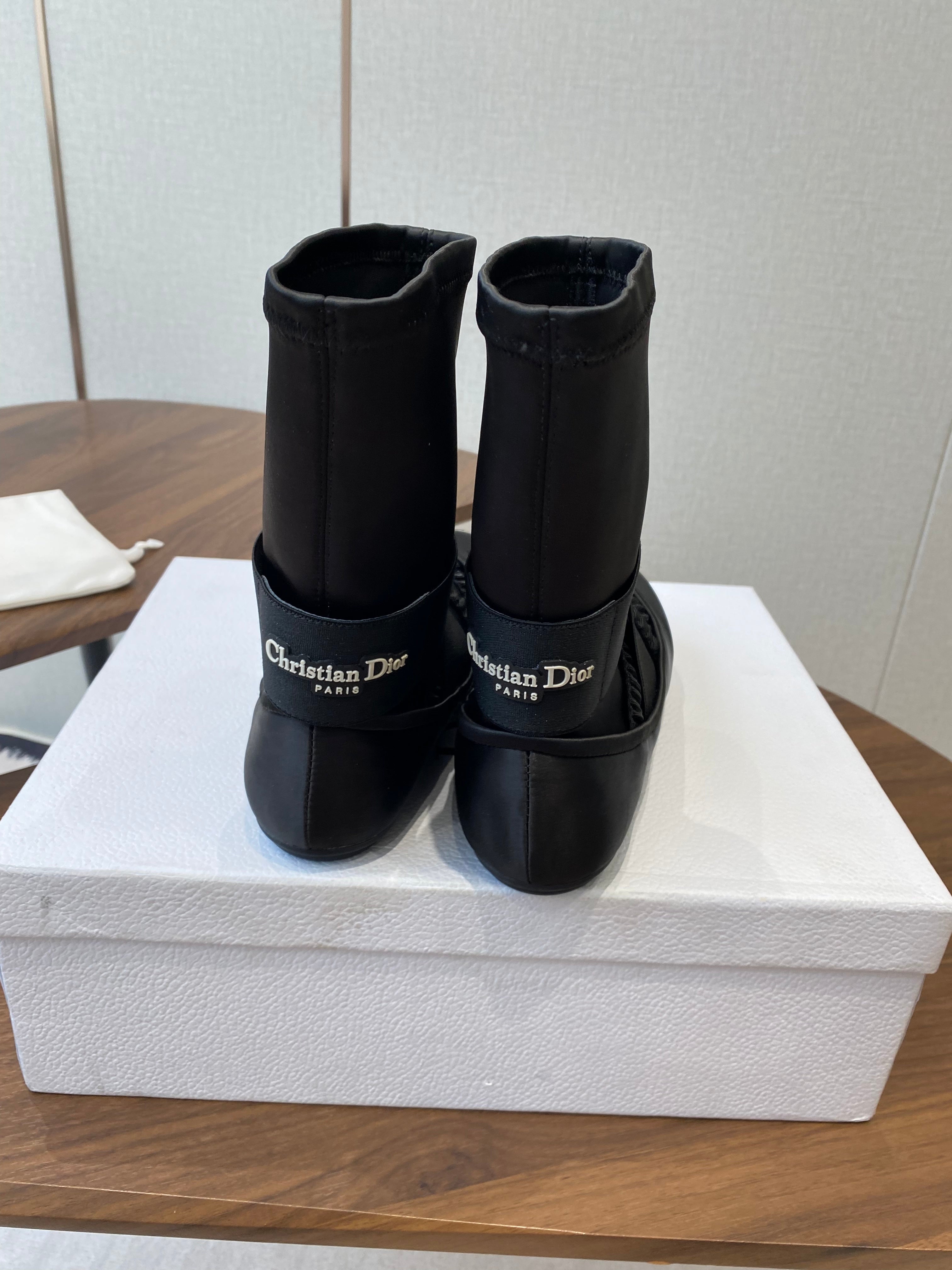DIOR 25S STRETCH BALLET BOOTS IN BLACK FULL SATIN