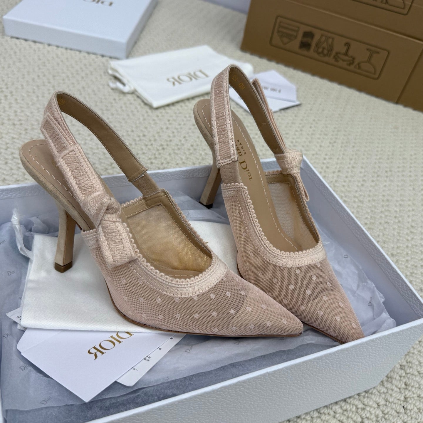 DIOR HIGH SLINGBACK 100 MM 25S IN NUDE LACE NET FABRIC AND SUEDE