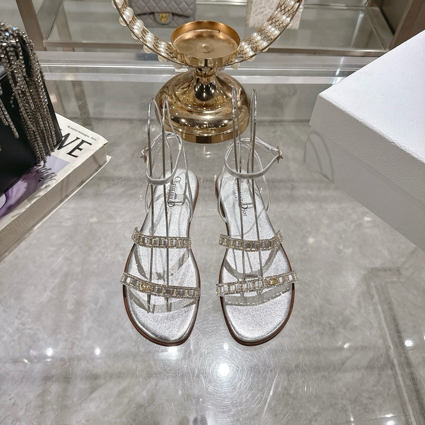 FLAT SANDALS 25S IN SILVER CALFSKIN RHINESTONES STRAP