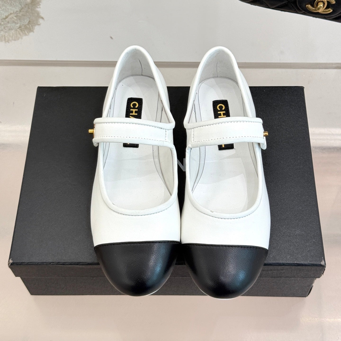 FLAT SHOES IN BLACK AND WHITE LAMBSKIN GOLD HARDWARE