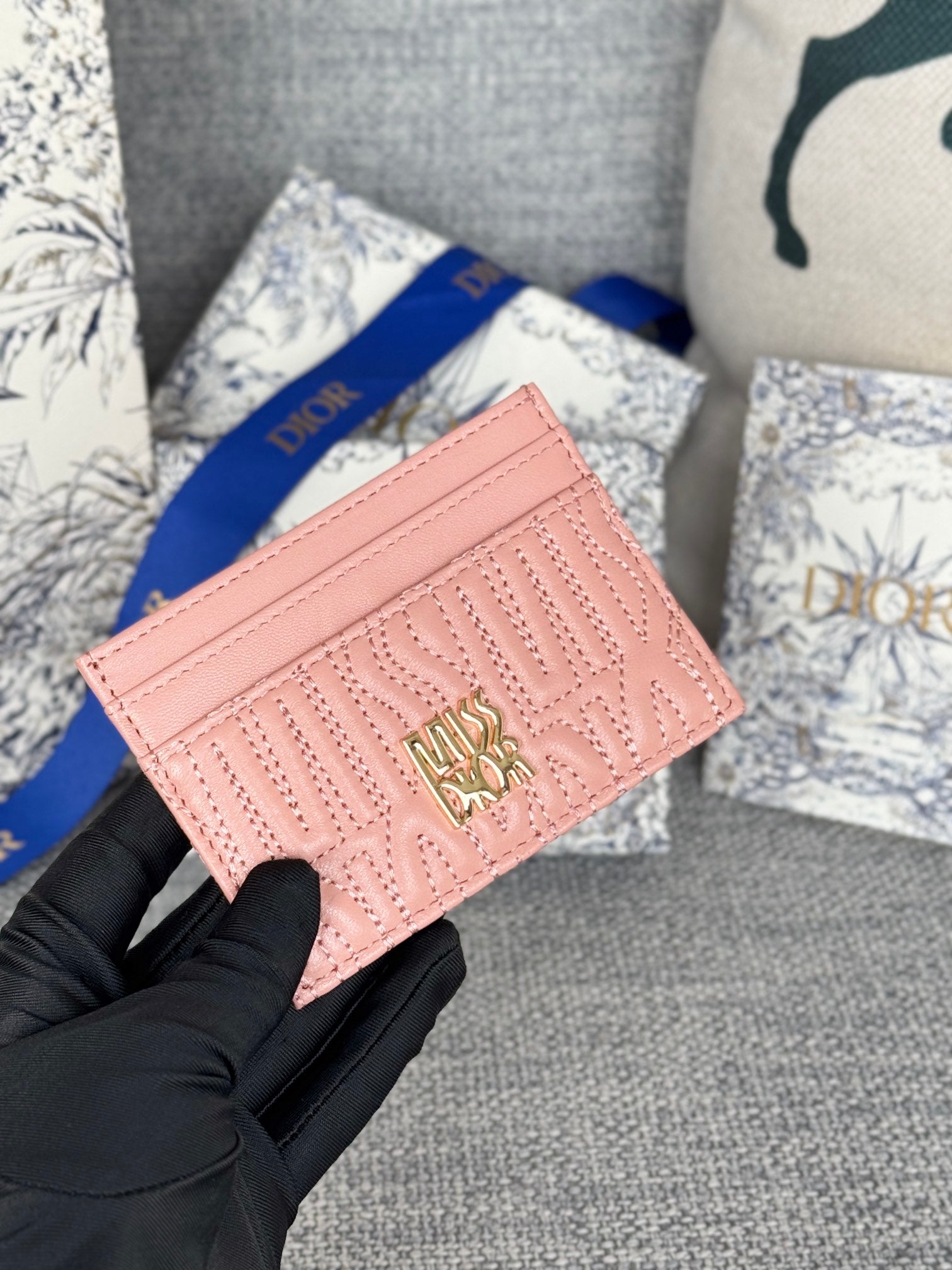 FREESIA CARD HOLDER 10 IN BABY PINK QUILTED ALLOVER CALFSKIN