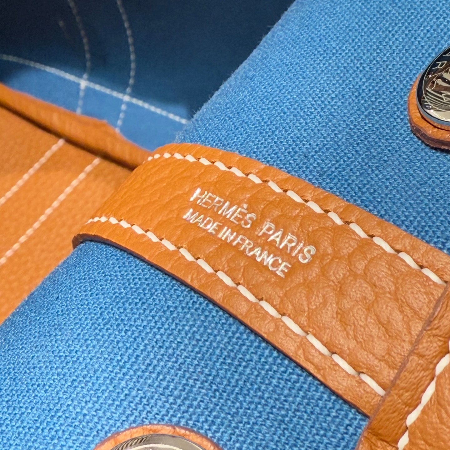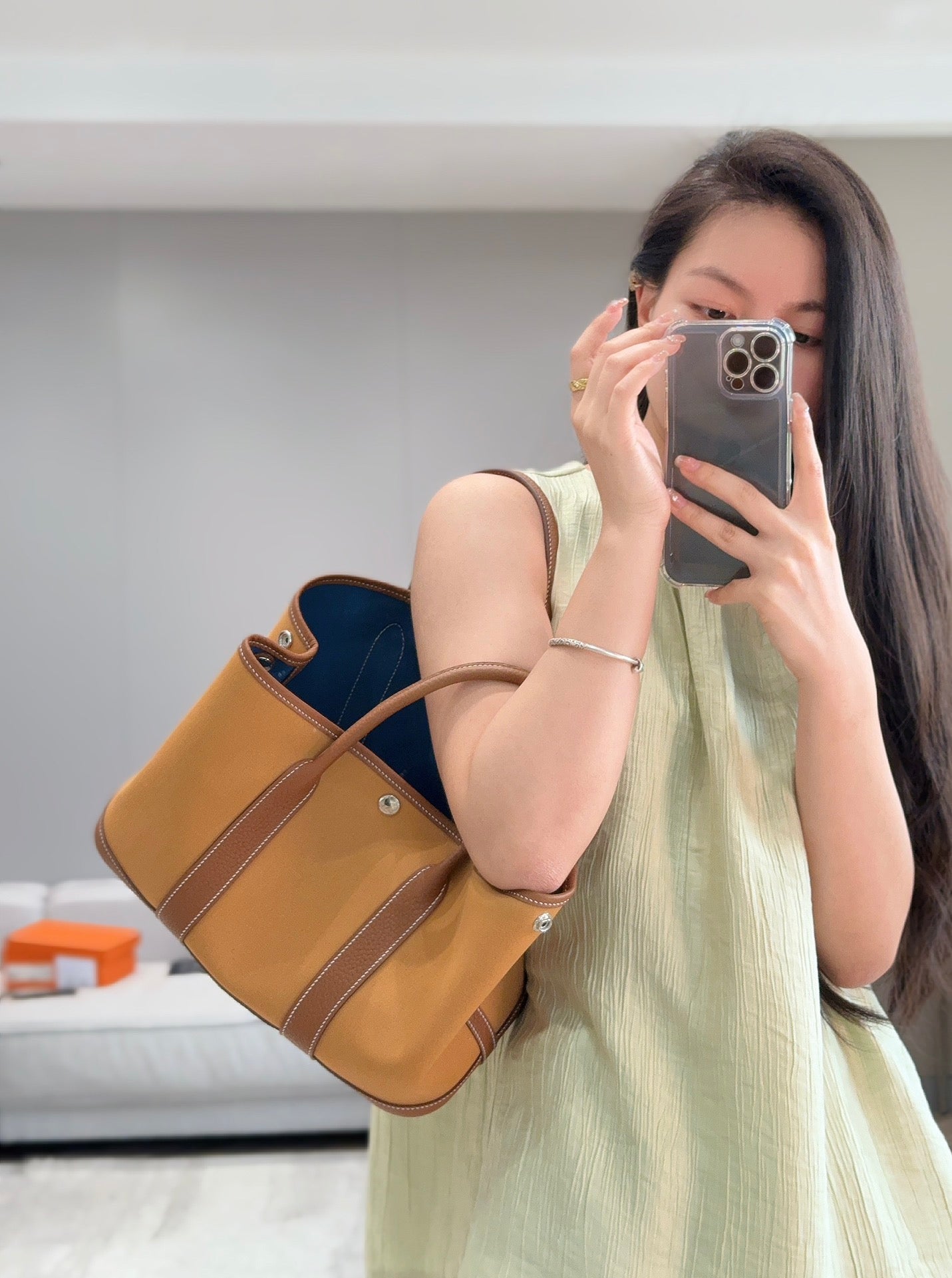 GARDEN PARTY 30CM IN DUNE MAGNOLIA TOILETS COTTON CANVAS AND BROWN CALFSKIN