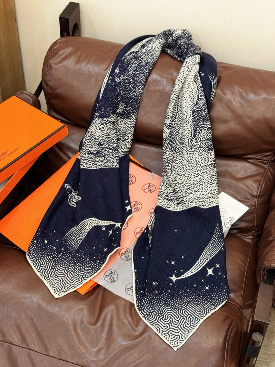 HERMES 25S SCARF 140 IN SILK CASHMERE 987418