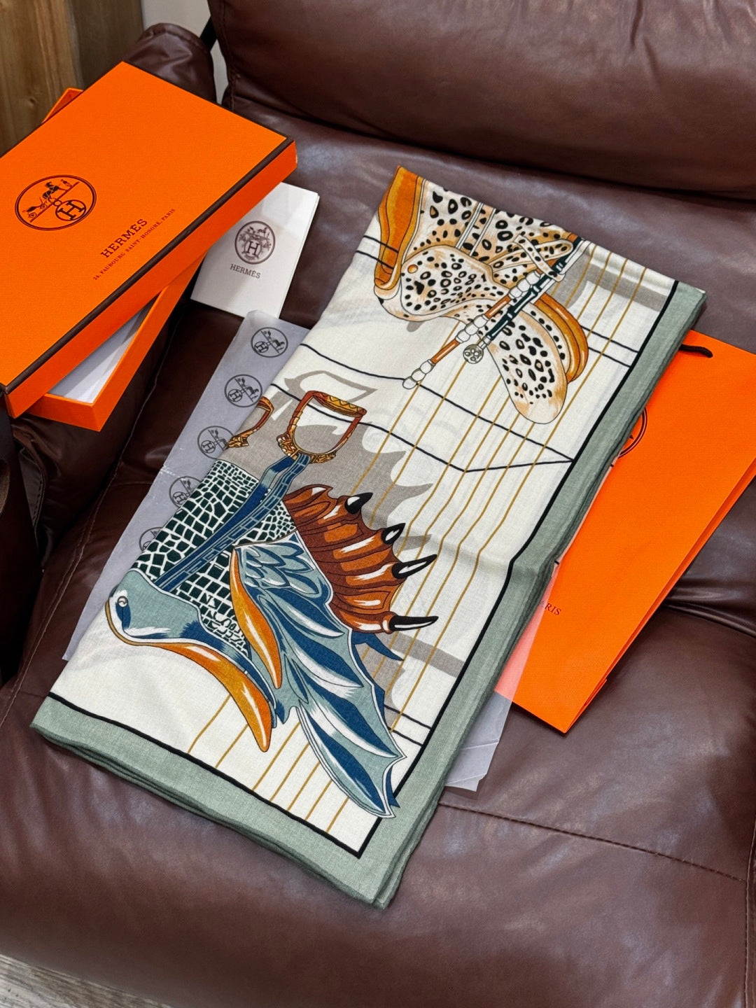 HERMES 25S SCARF 140 IN SILK CASHMERE 989484