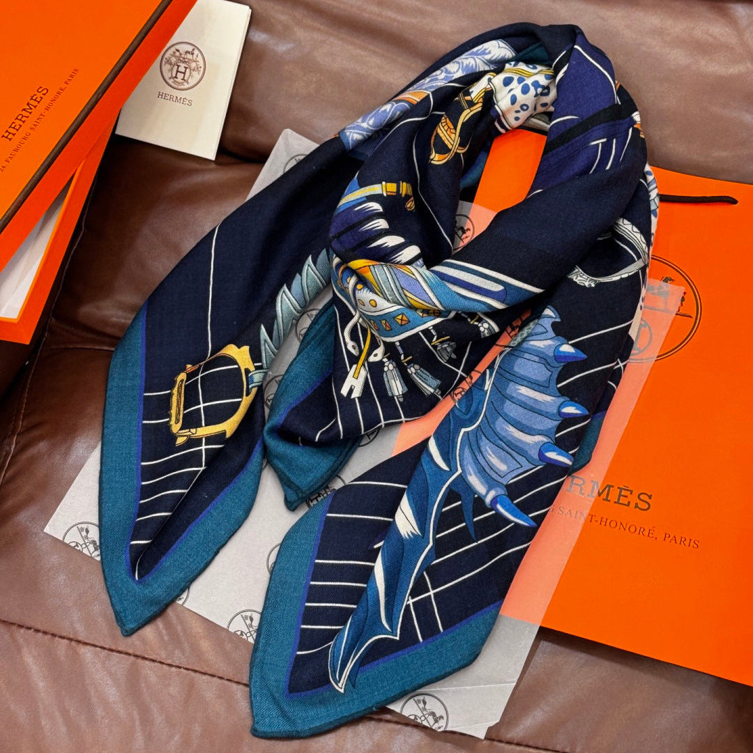 HERMES 25S SCARF 140 IN SILK CASHMERE 989486