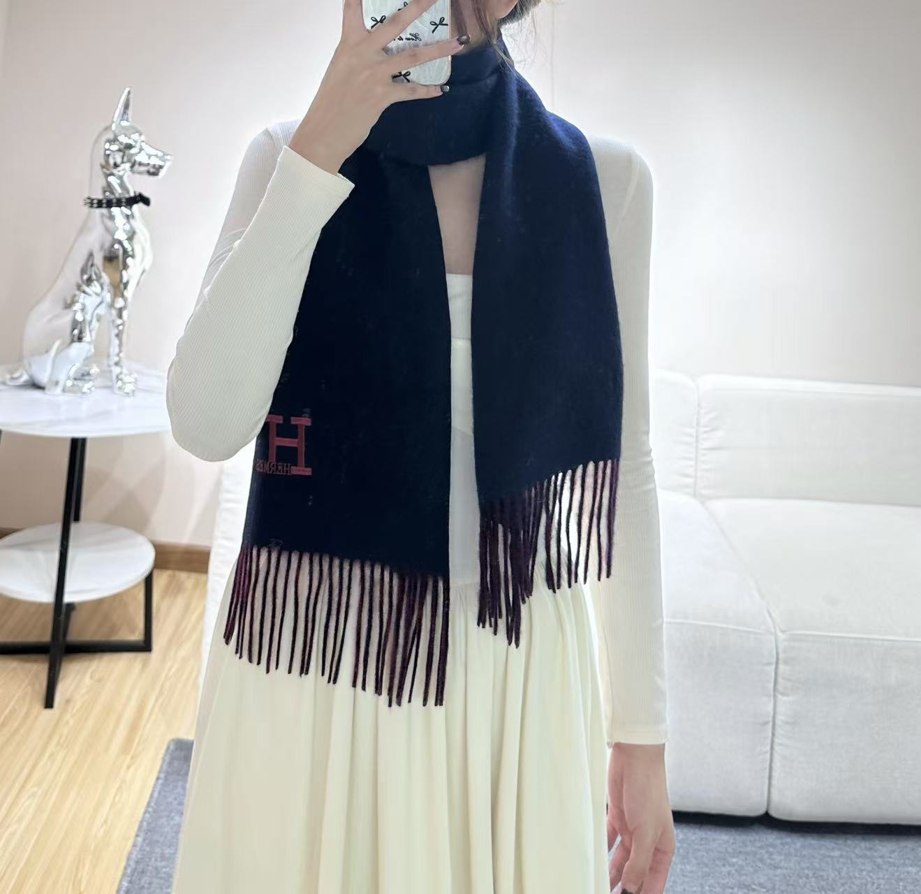 HERMES 25S SCARF 190 IN CASHMERE 985998