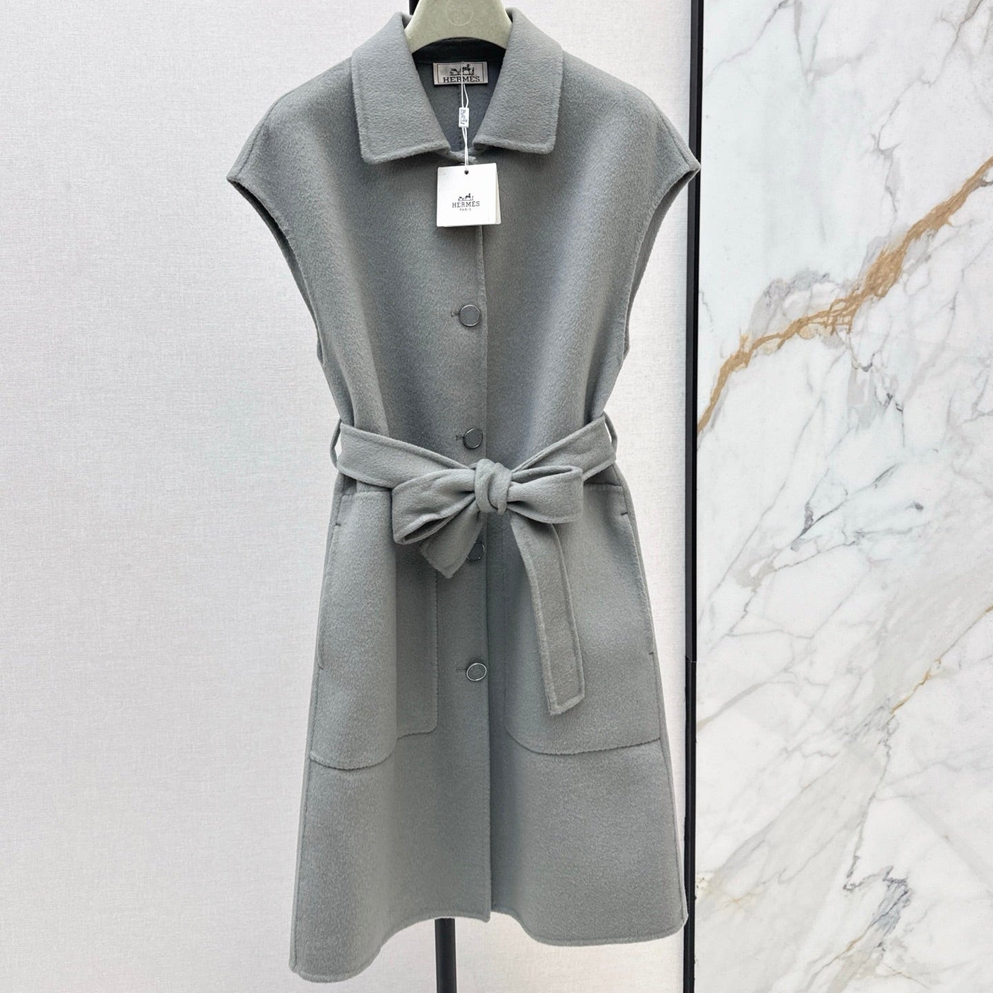 HERMES 25S SLEEVELESS WOOL VEST COAT WITH BOW BELT 96700