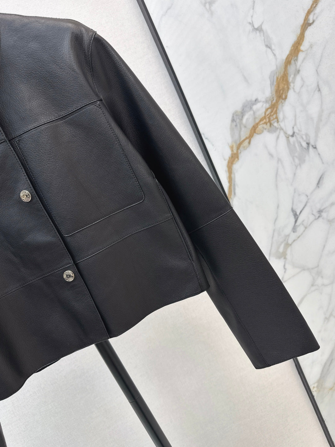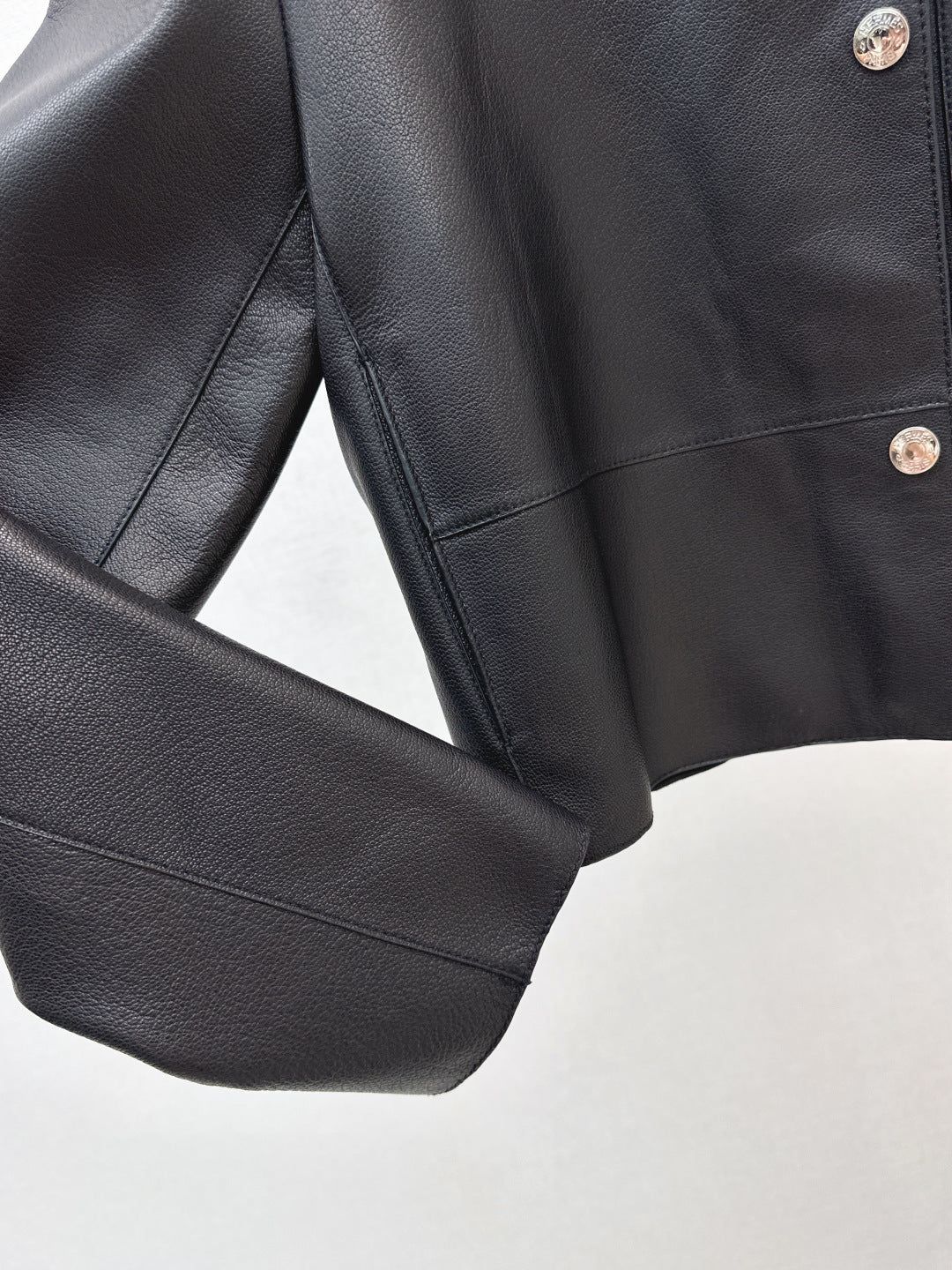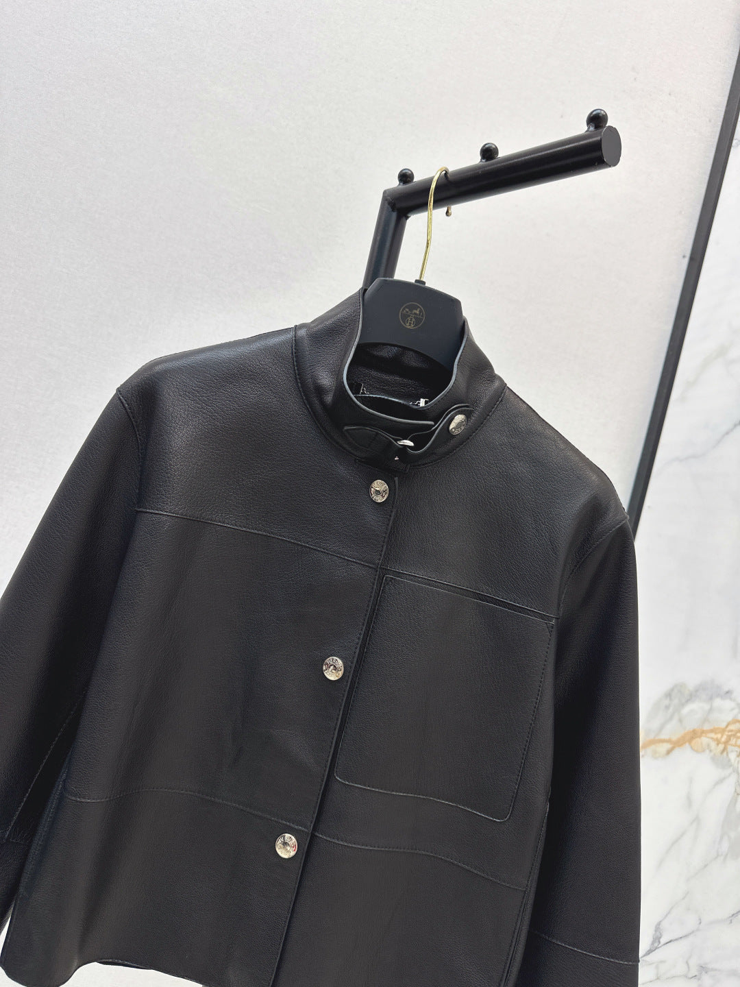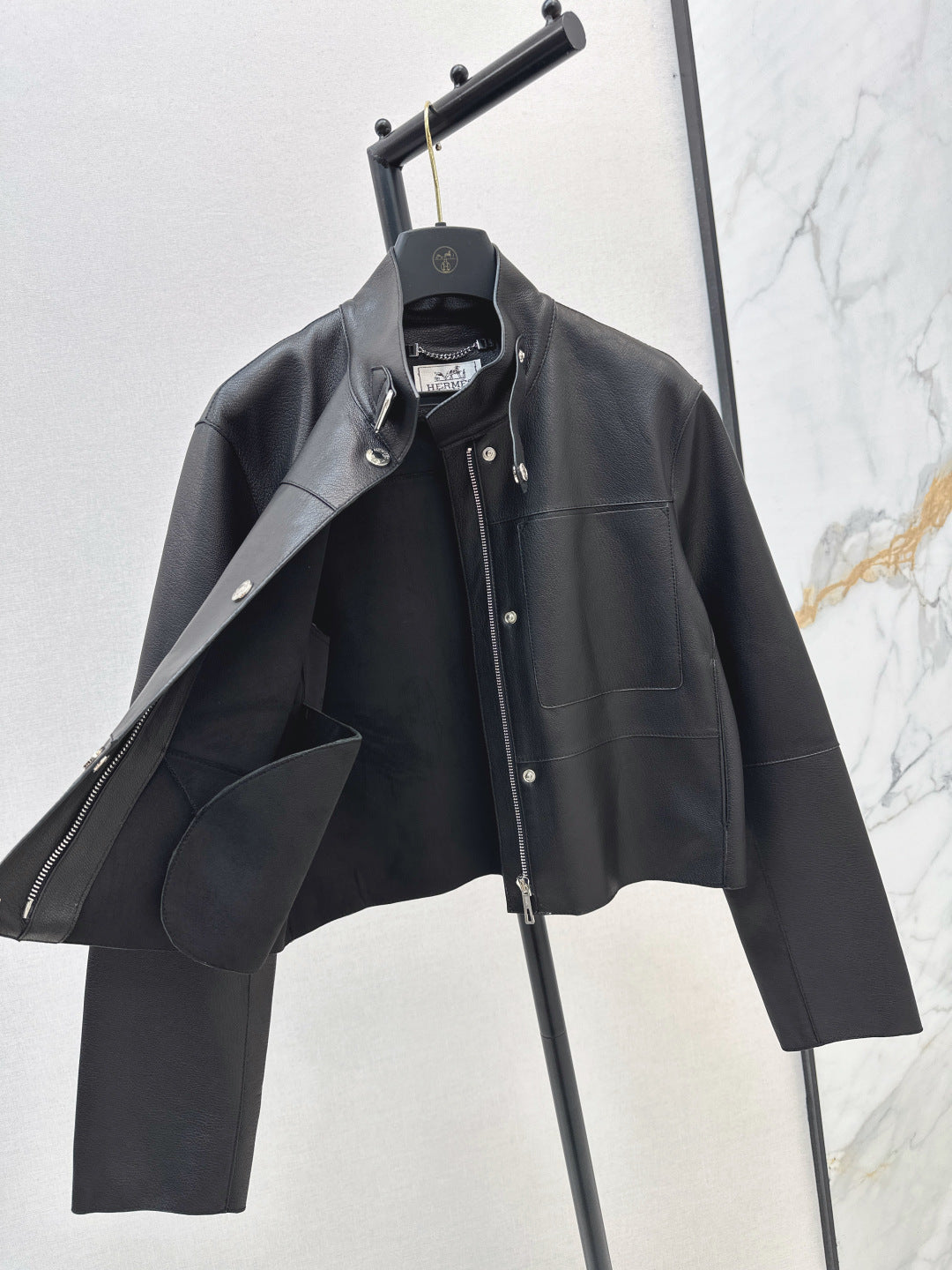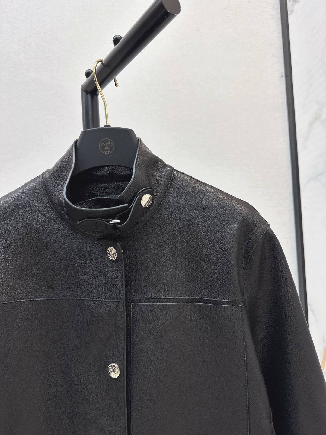 HERMES 25S STAND-COLLAR LEATHER JACKET 454