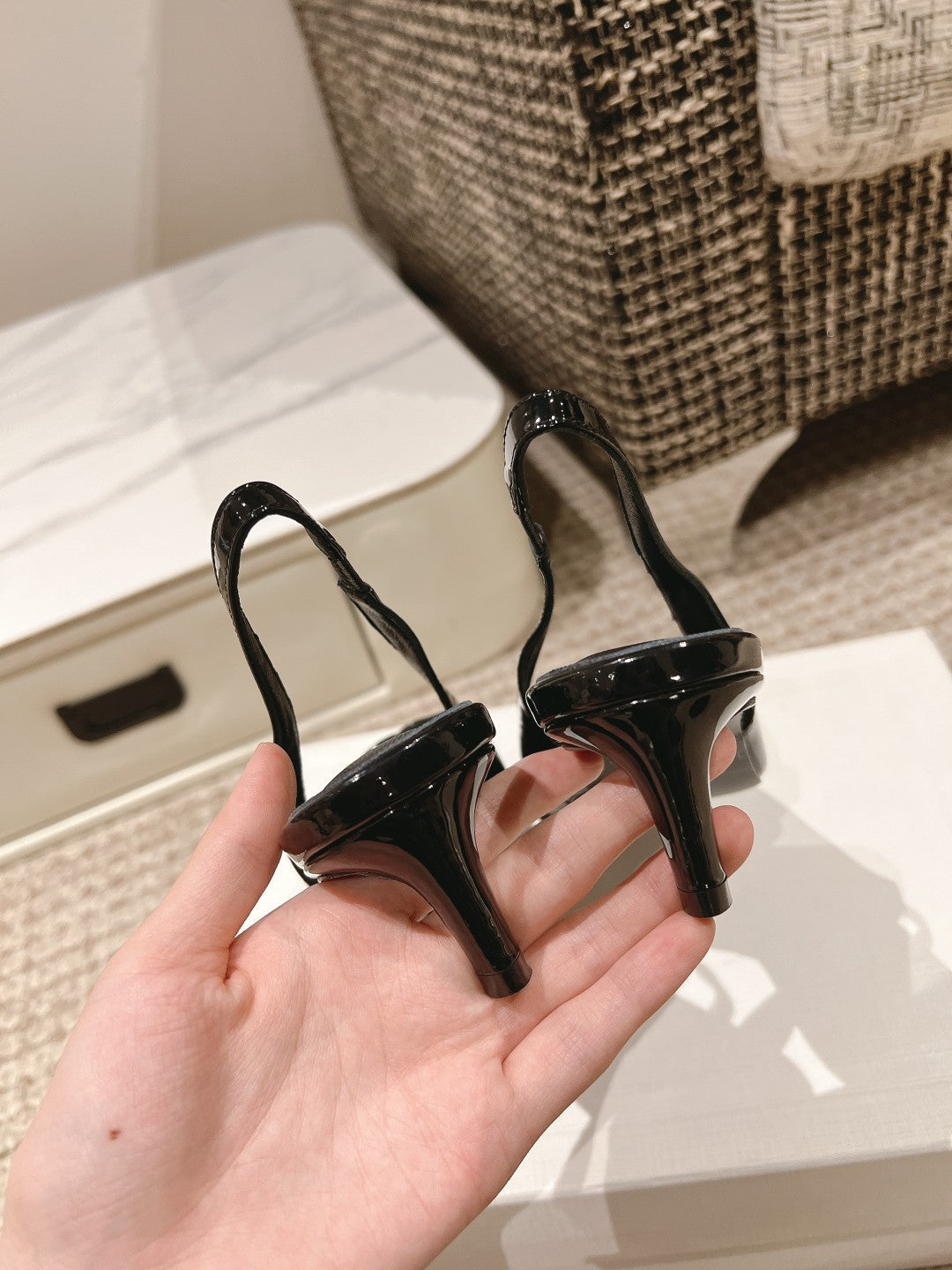 HIGH SLINGBACKS 5 CM IN BLACK PATENT CALFSKIN