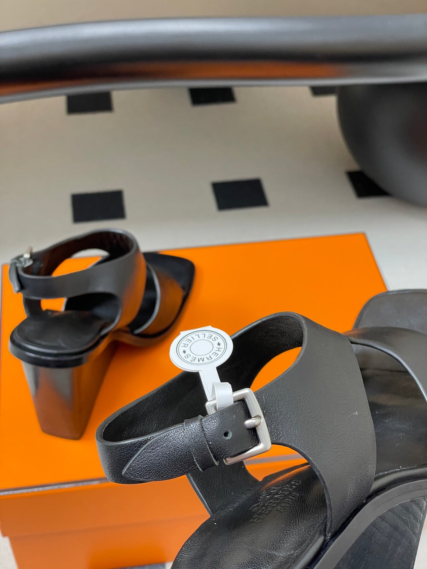 HM 25S KALYA WEDGE SANDAL 100 MM IN BLACK LAMBSKIN
