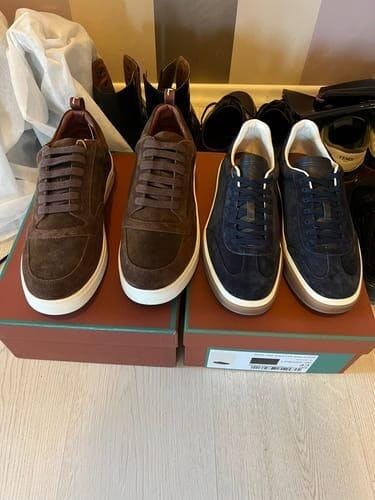 Loro Piana Tennis Walk Sneakers Suede Calf Split Navy Blue