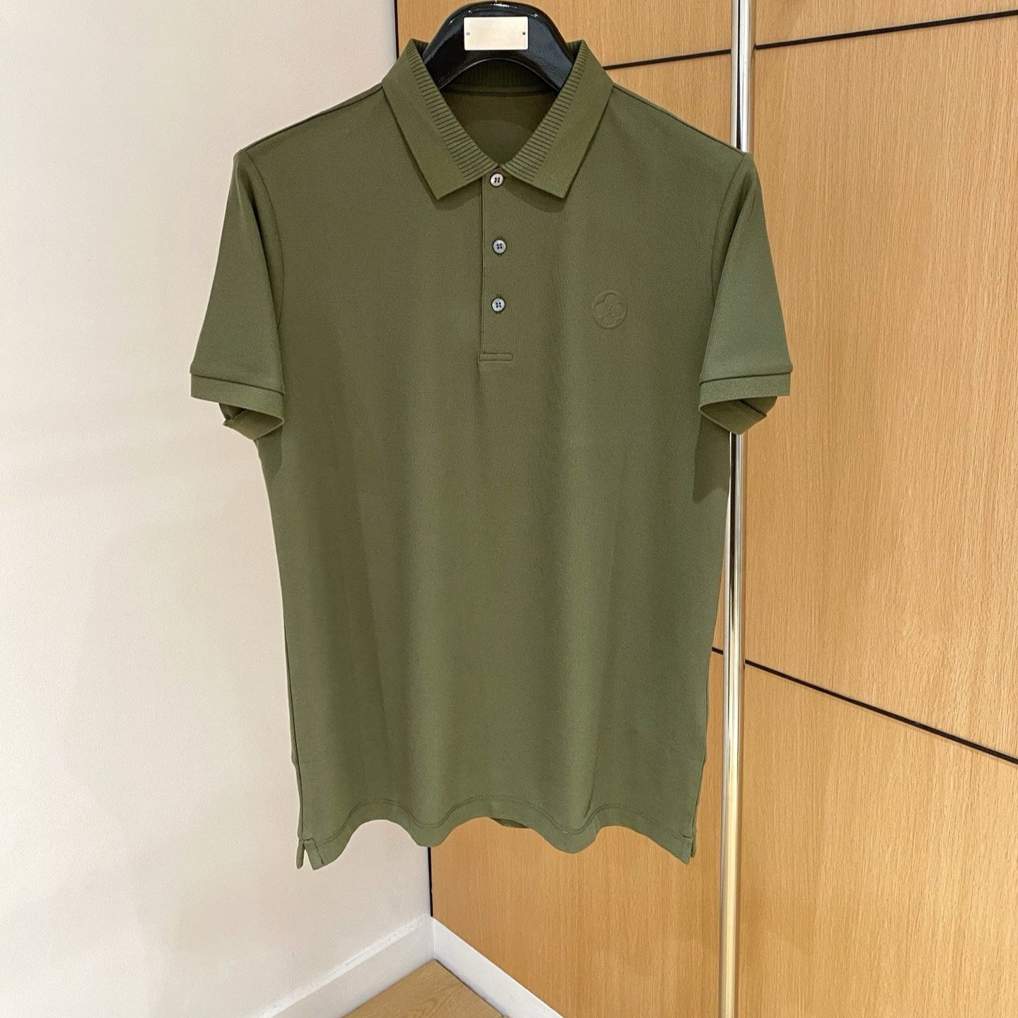 LV POLO SHIRT IN ARMY GREEN MESH BEADED COTTON FABRIC 238855