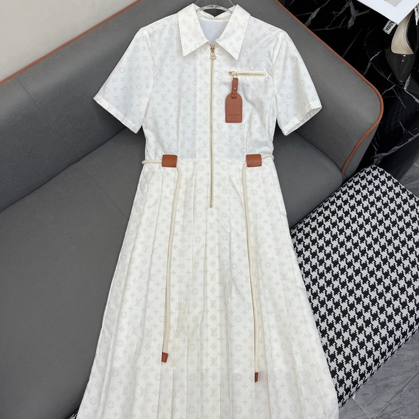 LV SHIRT DRESS WITH PLEATED HEM 25IN POLYESTER 266636