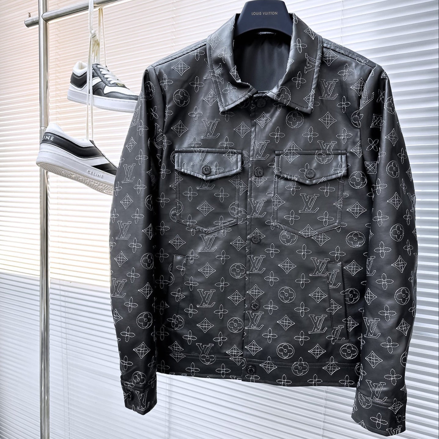 LV SHIRT JACKET IN BLACK MONOGRAM EMBROIDERED CALFSKIN 239119