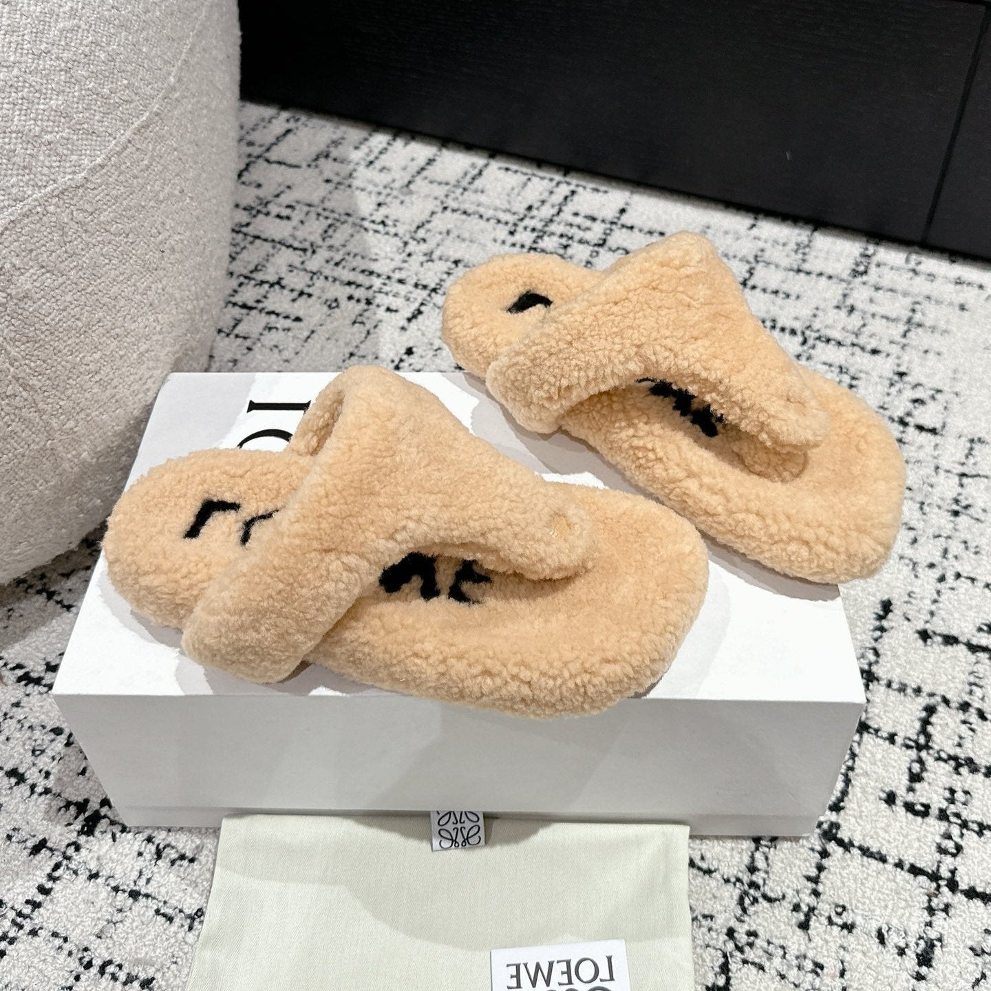 LW SHEARLING THONG SLIPPER IN PASTEL YELLOW