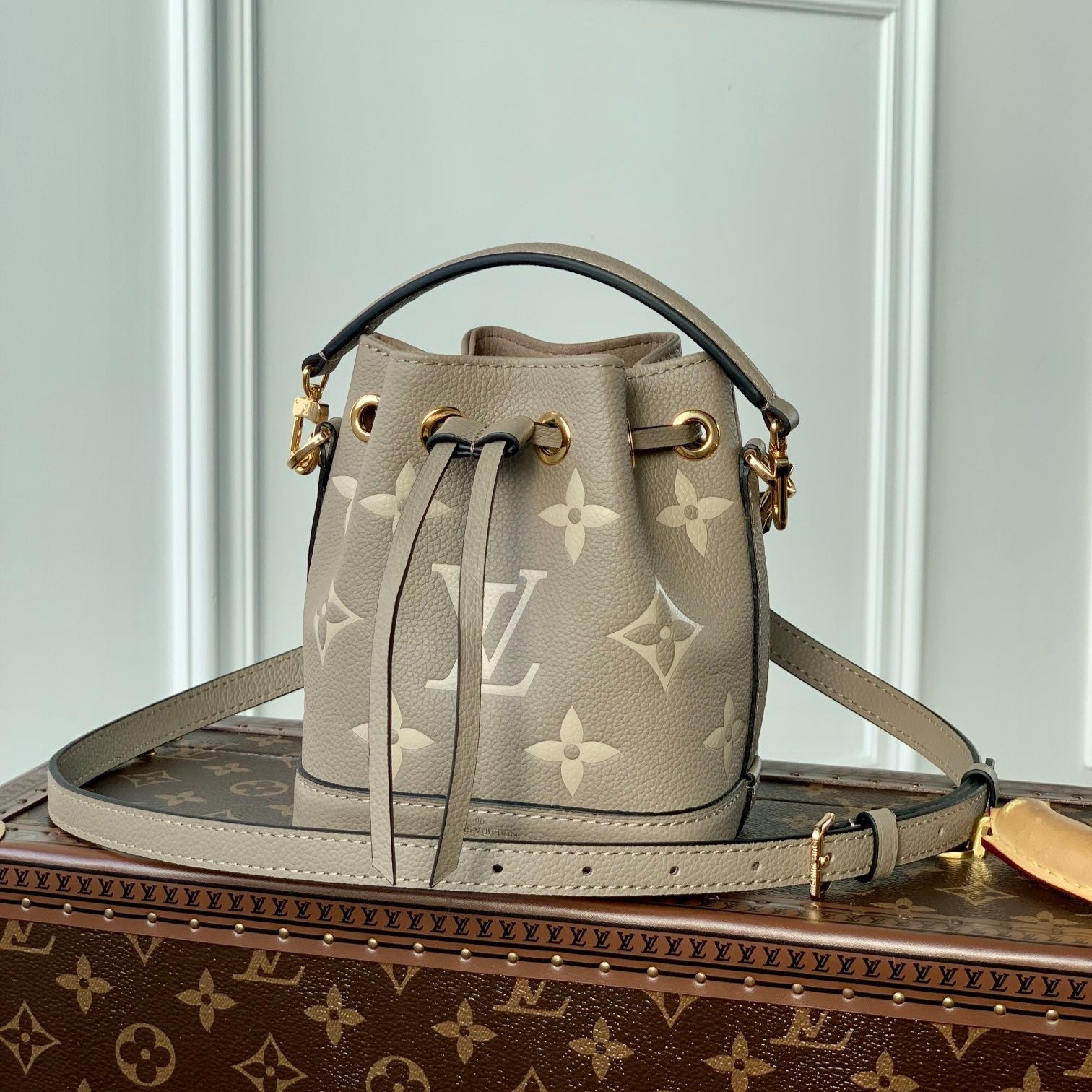 NANO NOÉ 16 IN GREY TOURTERELLE BICOLOR MONOGRAM EMPREINTE CALFSKIN