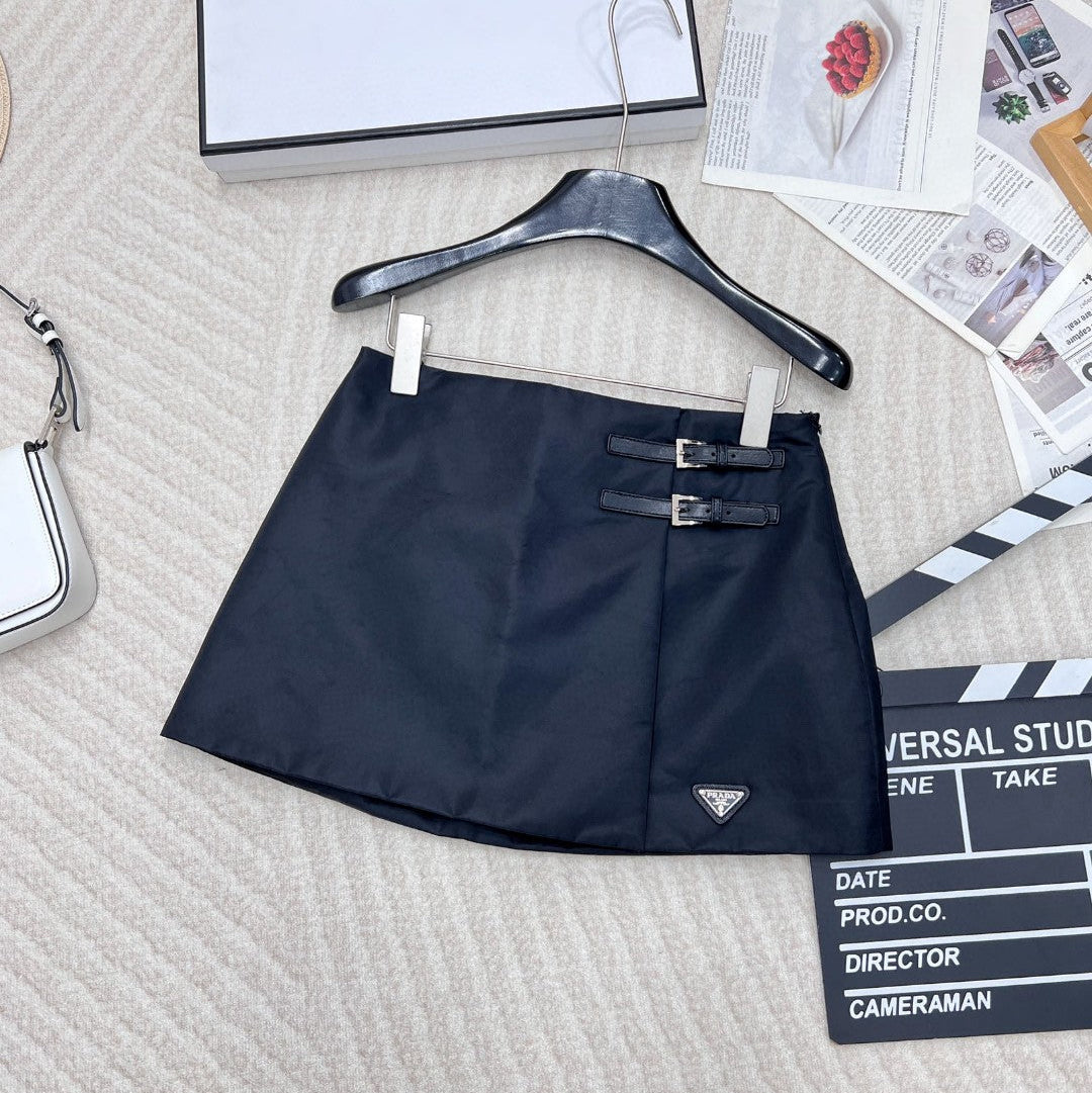 Pra Re-Nylon Wraparound Miniskirt Dark Blue Fabric And Leather Straps