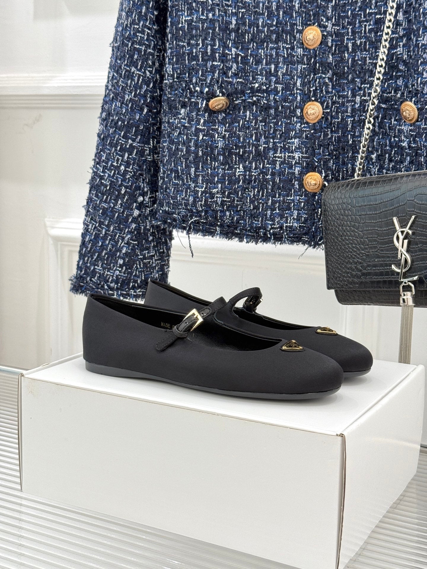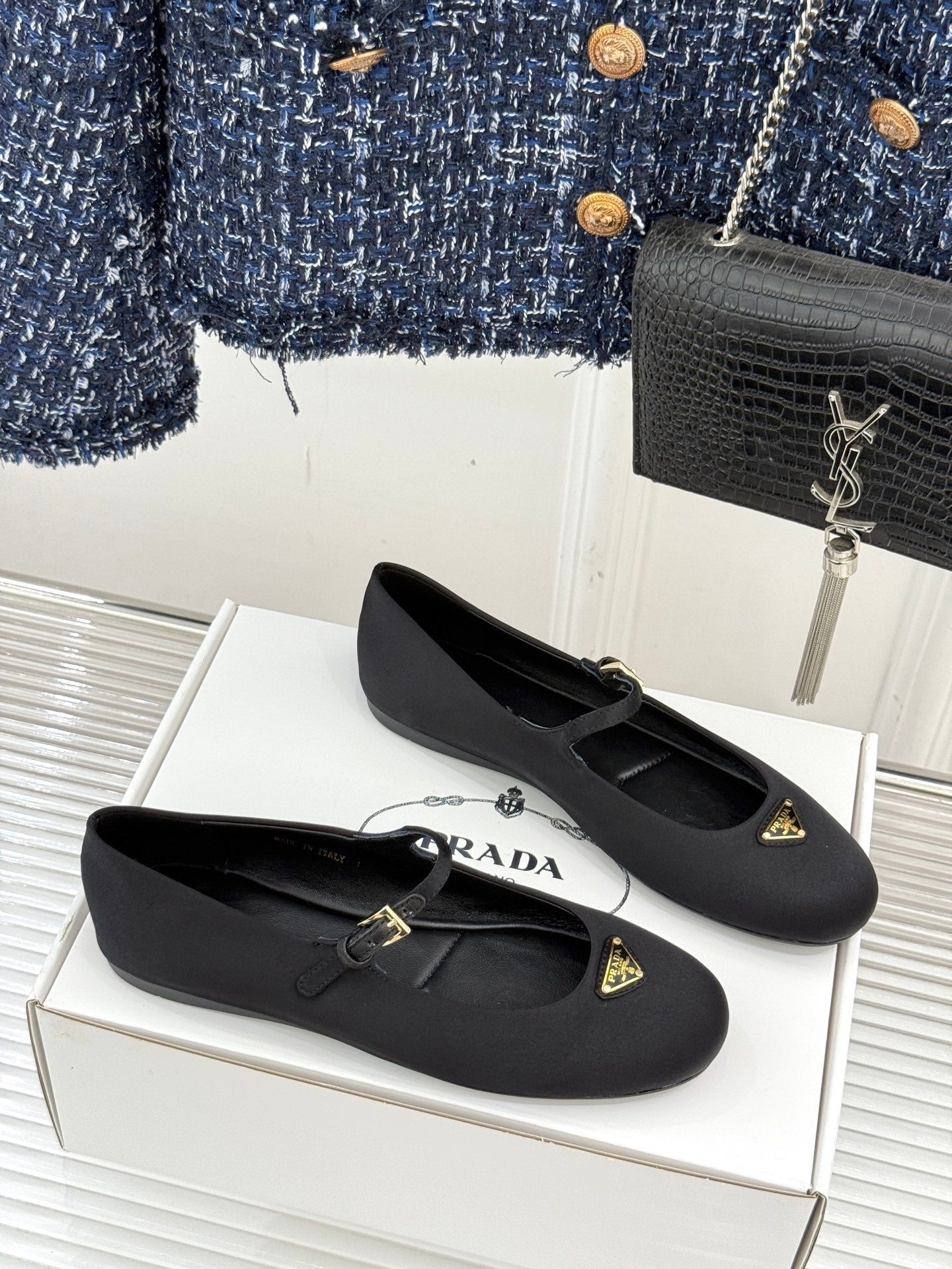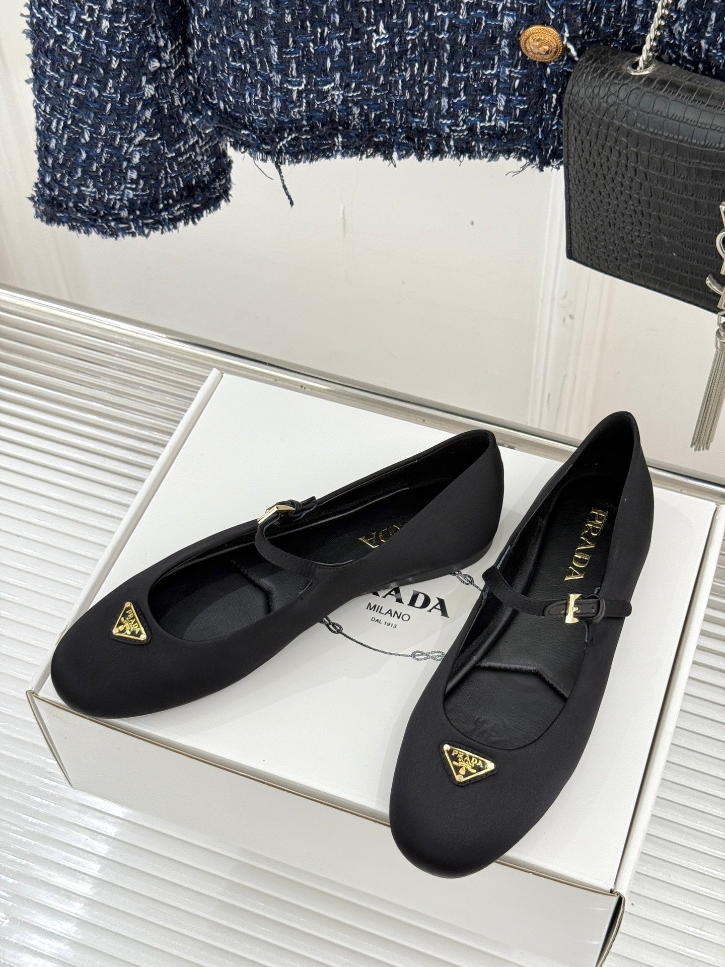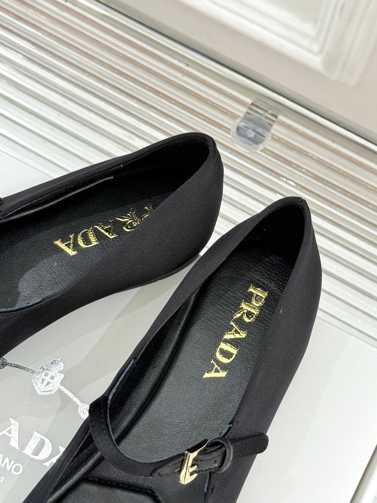 PRADA 25S BALLERINAS IN BLACK SATIN
