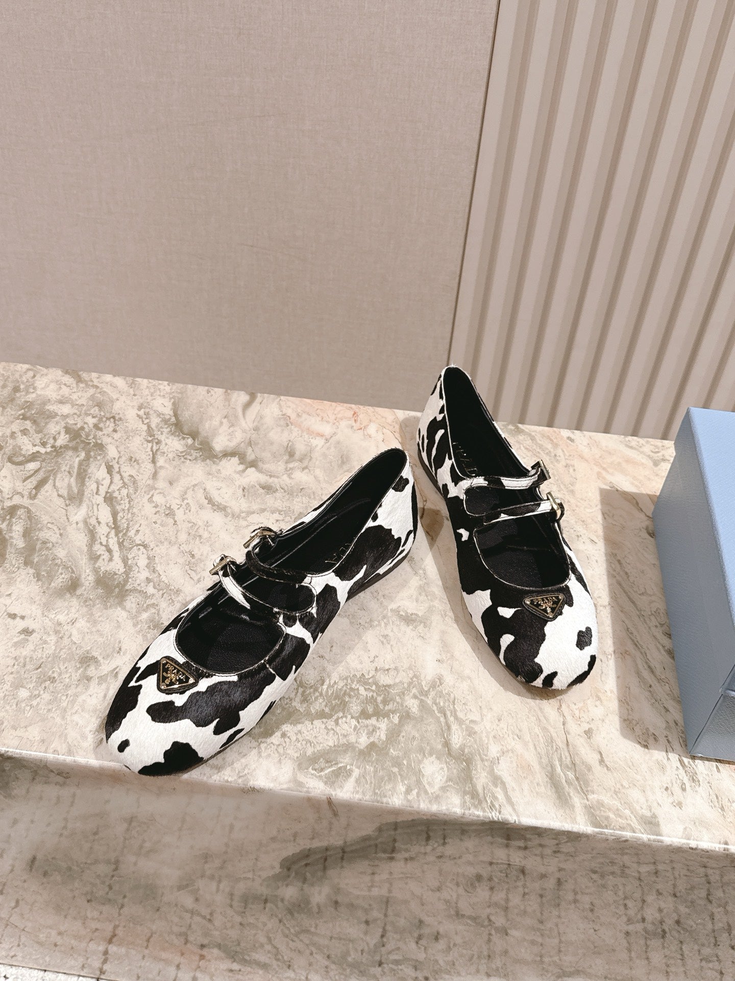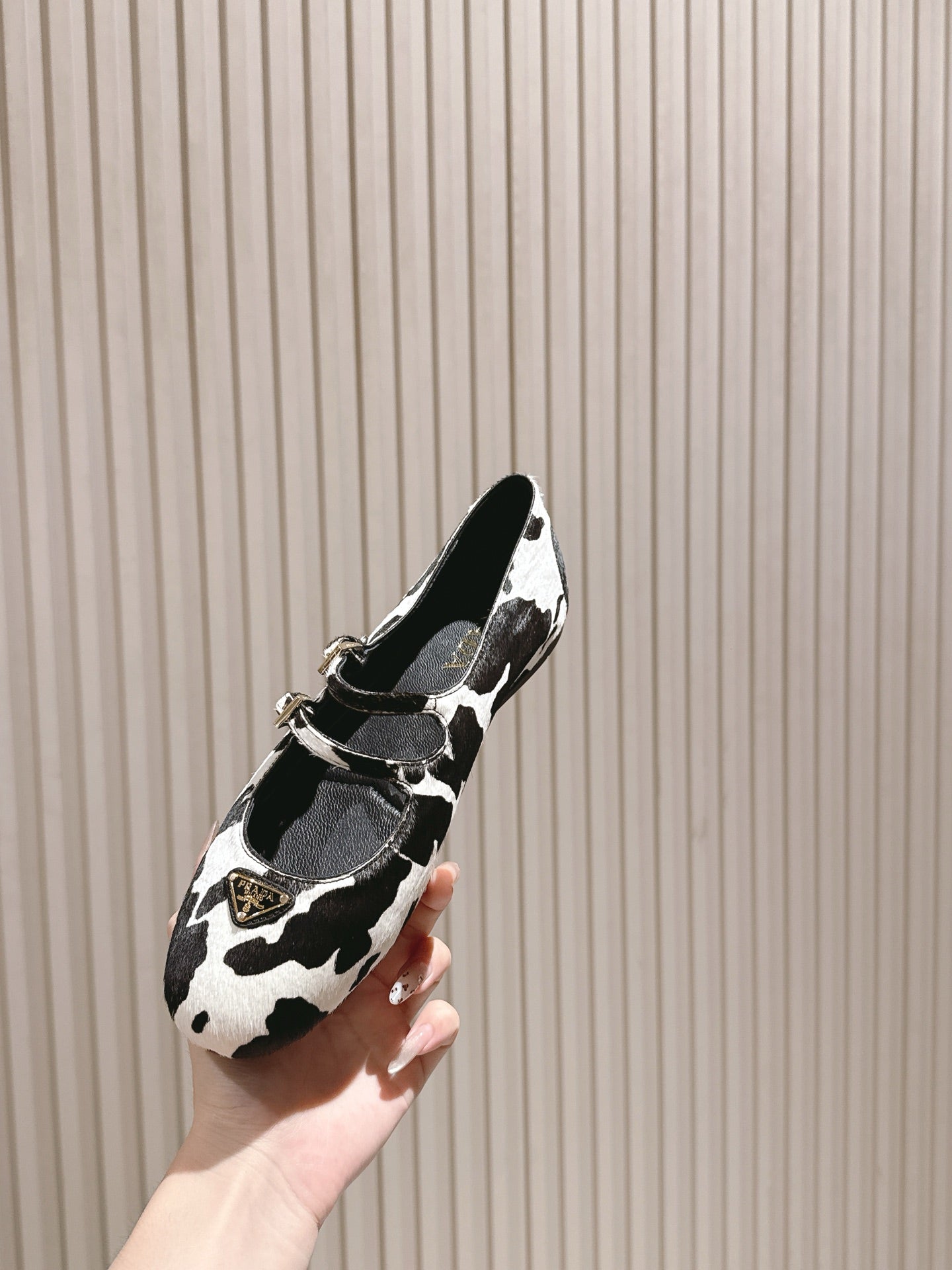 PRADA 25S CRYSTAL EMBELLISHED BALLERINA IN WHITE AND BLACK FUR