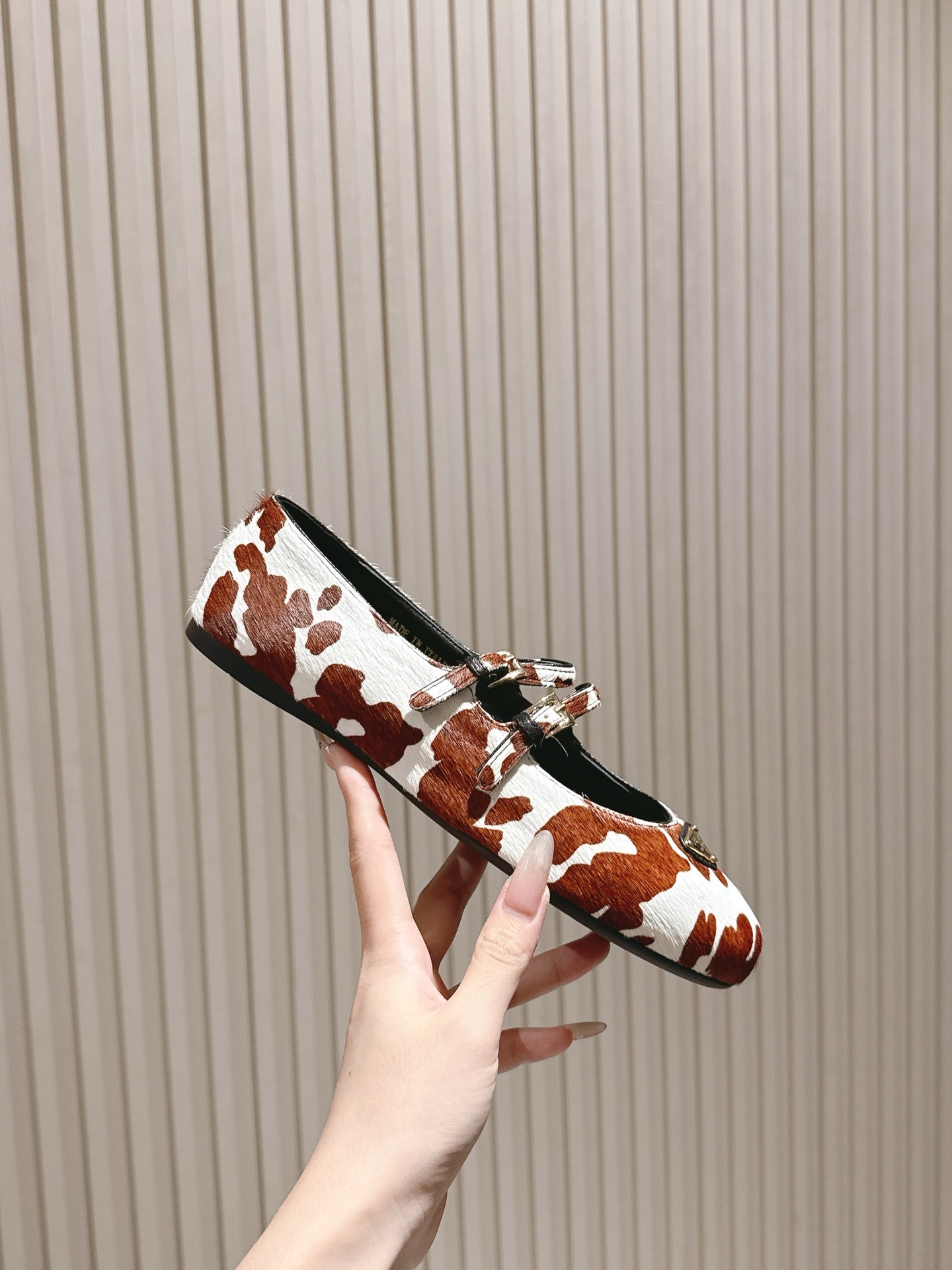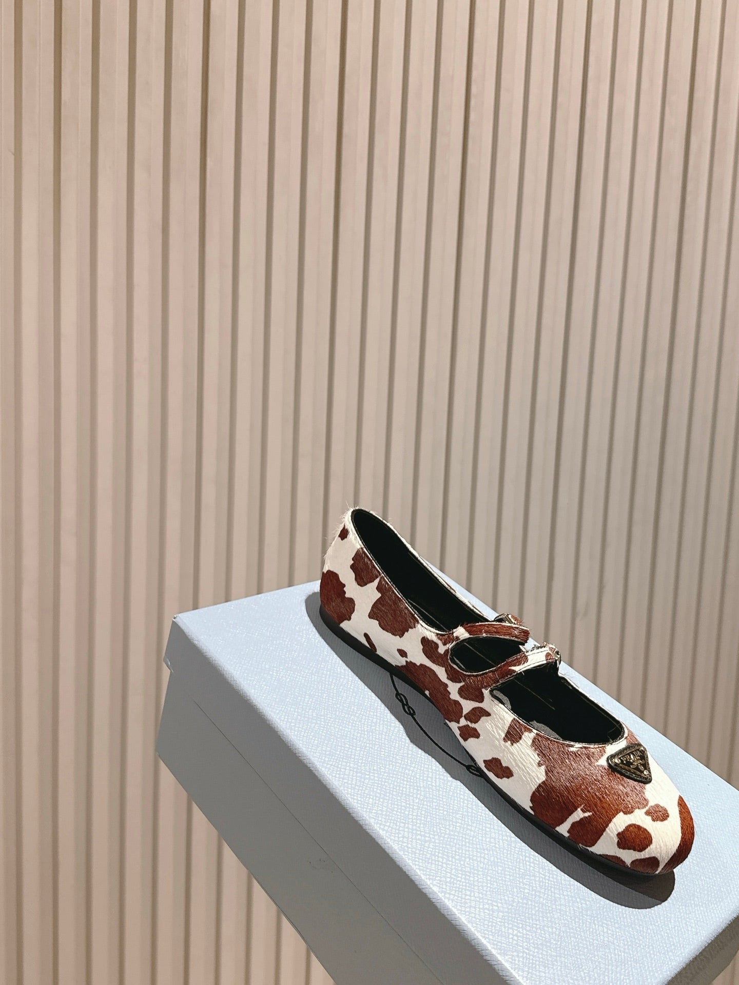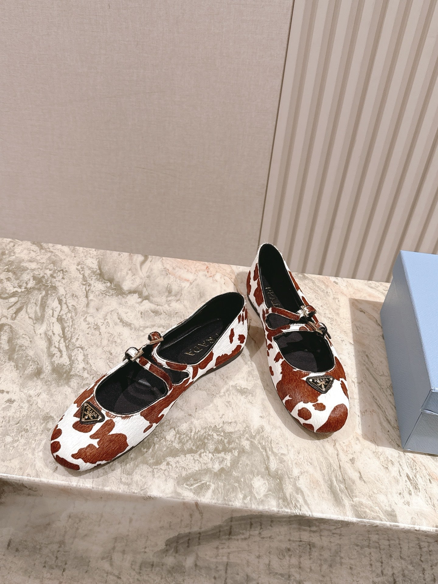 PRADA 25S CRYSTAL EMBELLISHED BALLERINA IN WHITE AND DARK BROWN FUR