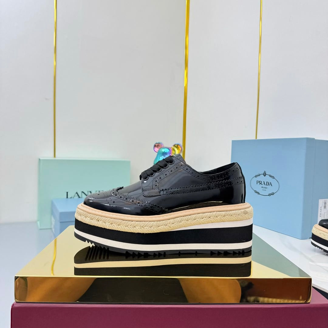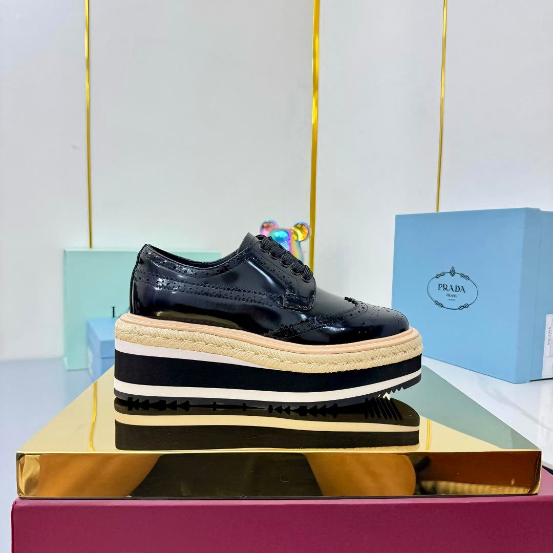 PRADA 25S FLAT WEDGE SHOES 60MM IN BLACK GLOSSY CALFSKIN