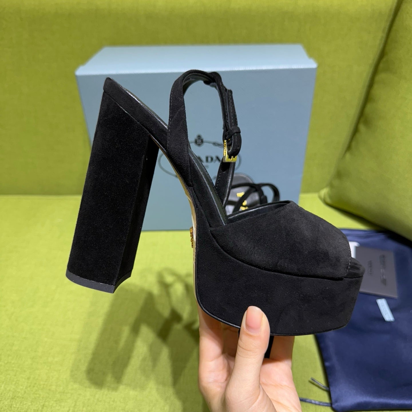 PRADA 25S HIGH-HEEL SANDALS 140 MM IN BLACK SUEDE STYLE 4