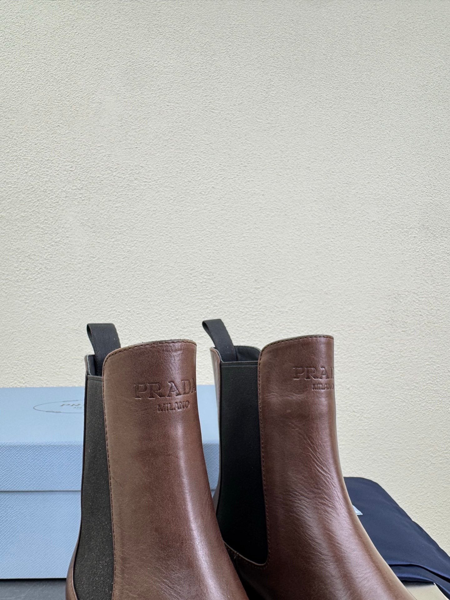 PRADA 25S PLATFORM CHELSEA BOOTS IN DARK BROWN CALFSKIN