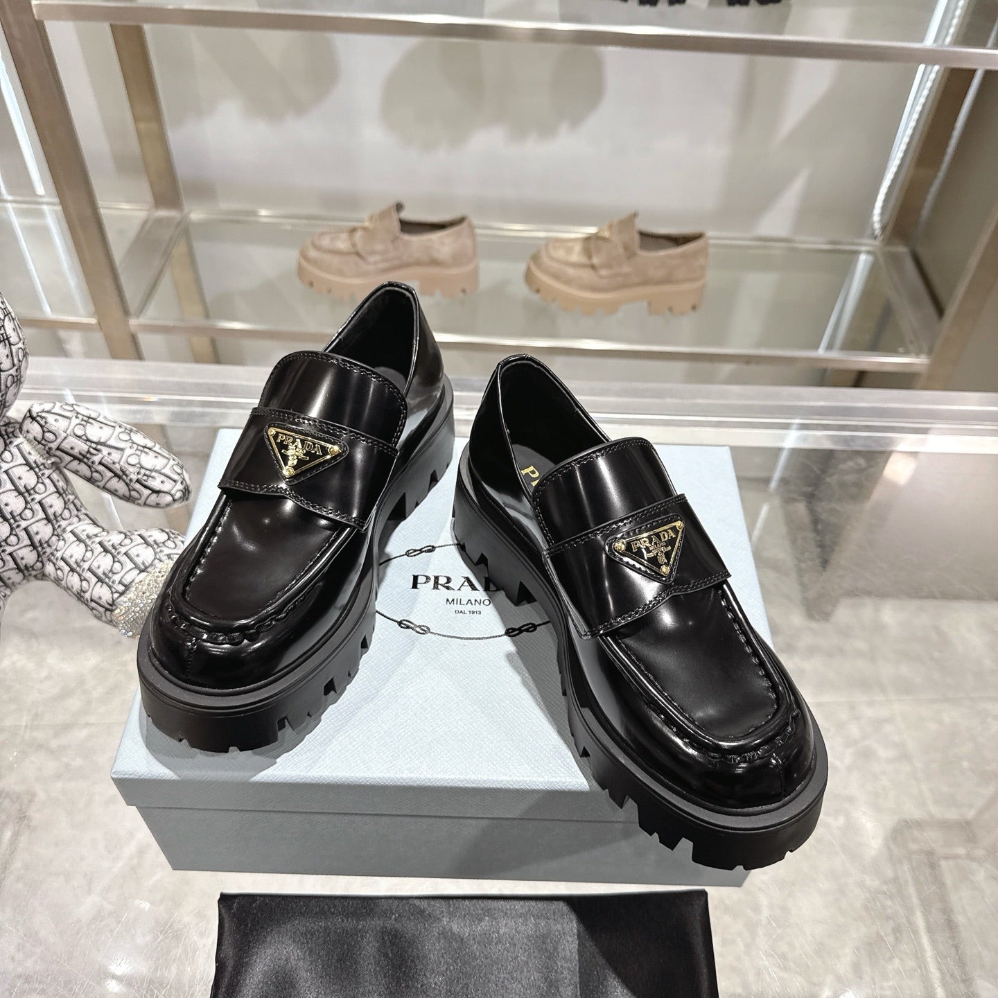 PRADA 25S THICK-SOLE LOAFERS 60 MM IN BLACK CALFSKIN