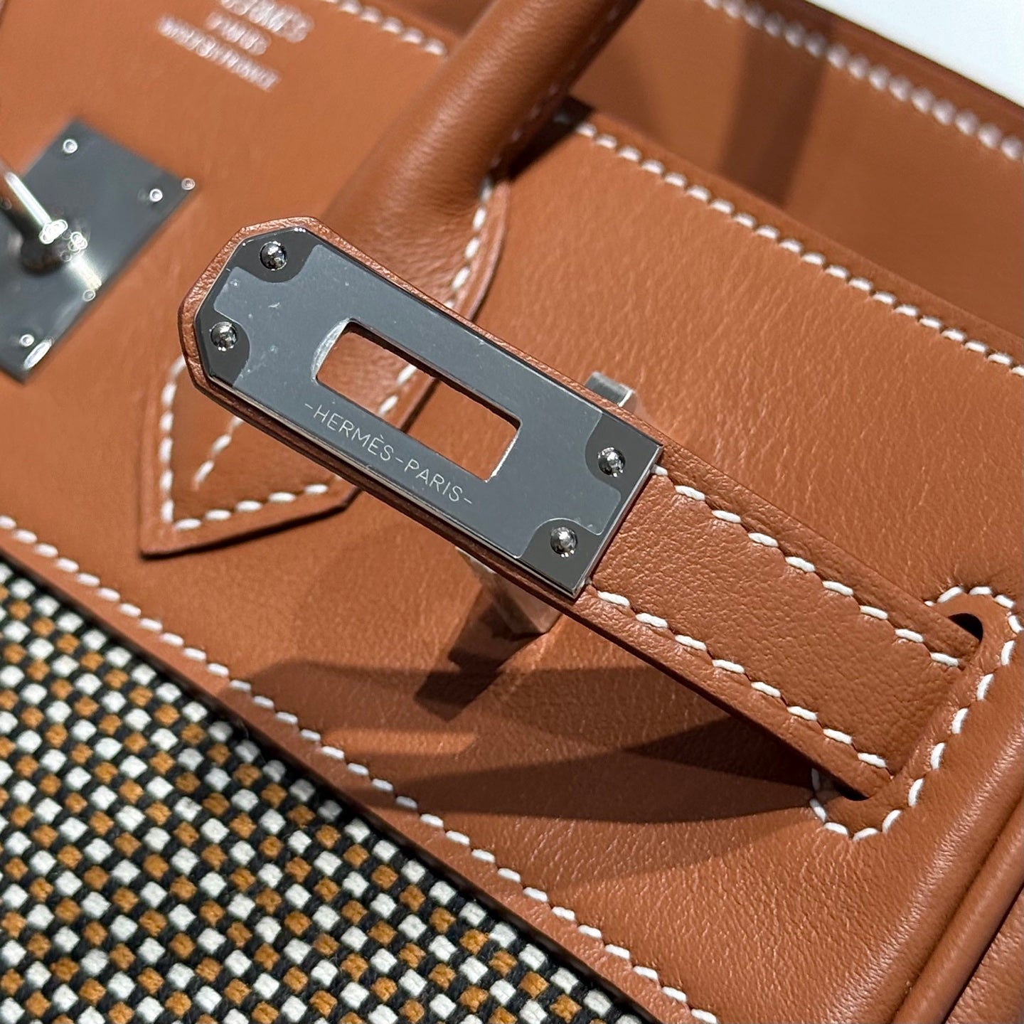 QUADRILLE BIRKIN 25CM IN GOLD SWIFT CALFSKIN AND BLACK/WHITE/BROWN TOILE CANVAS