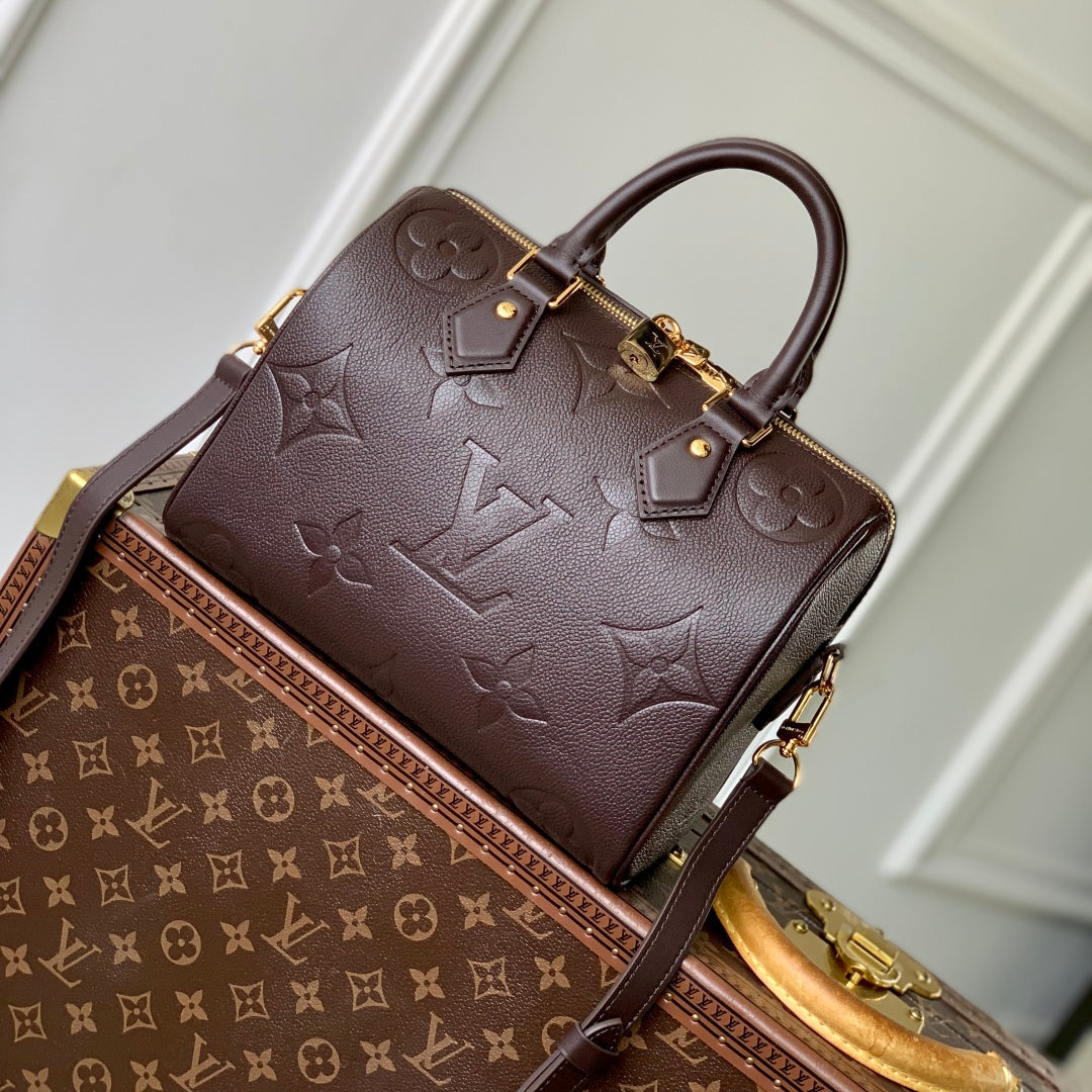 SPEEDY BANDOULIERE 25 IN DARK BROWN MONOGRAM EMPREINTE CALFSKIN EMBOSSED LOGO