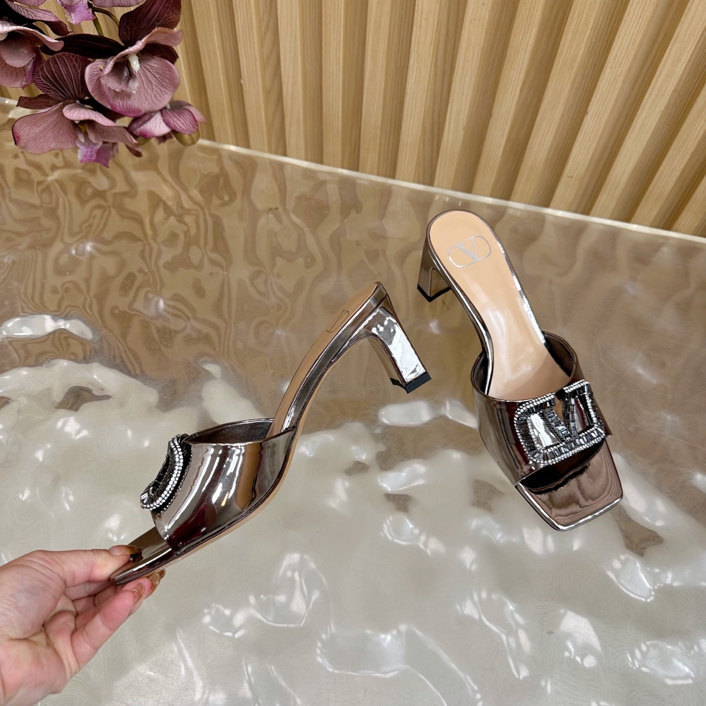 VALENTINO 25S HIGH-HEEL MULES 60 MM IN METALLIC SILVER PATENT CALFSKIN WITH CRYSTAL-EMBELLISHED STRAP