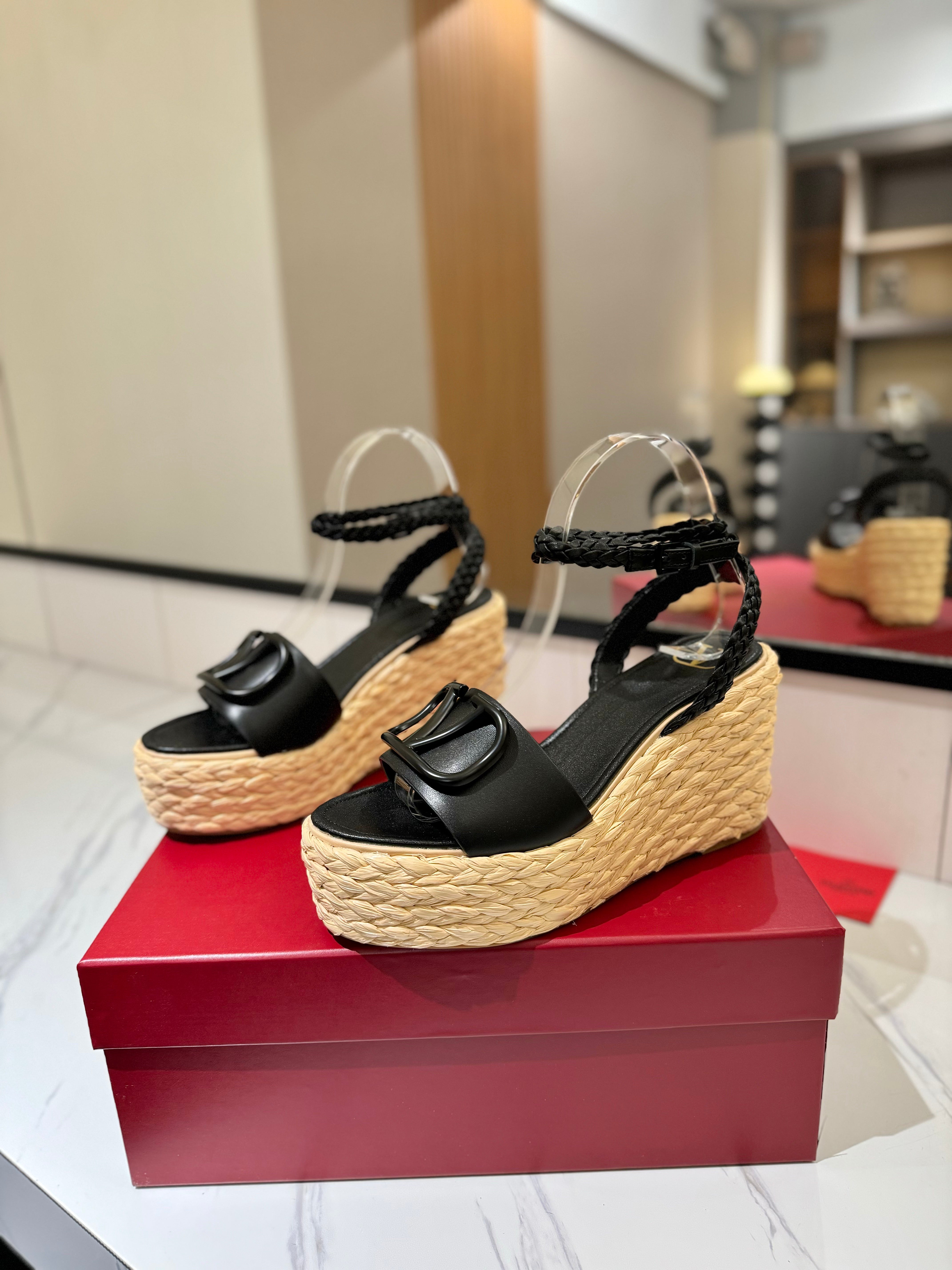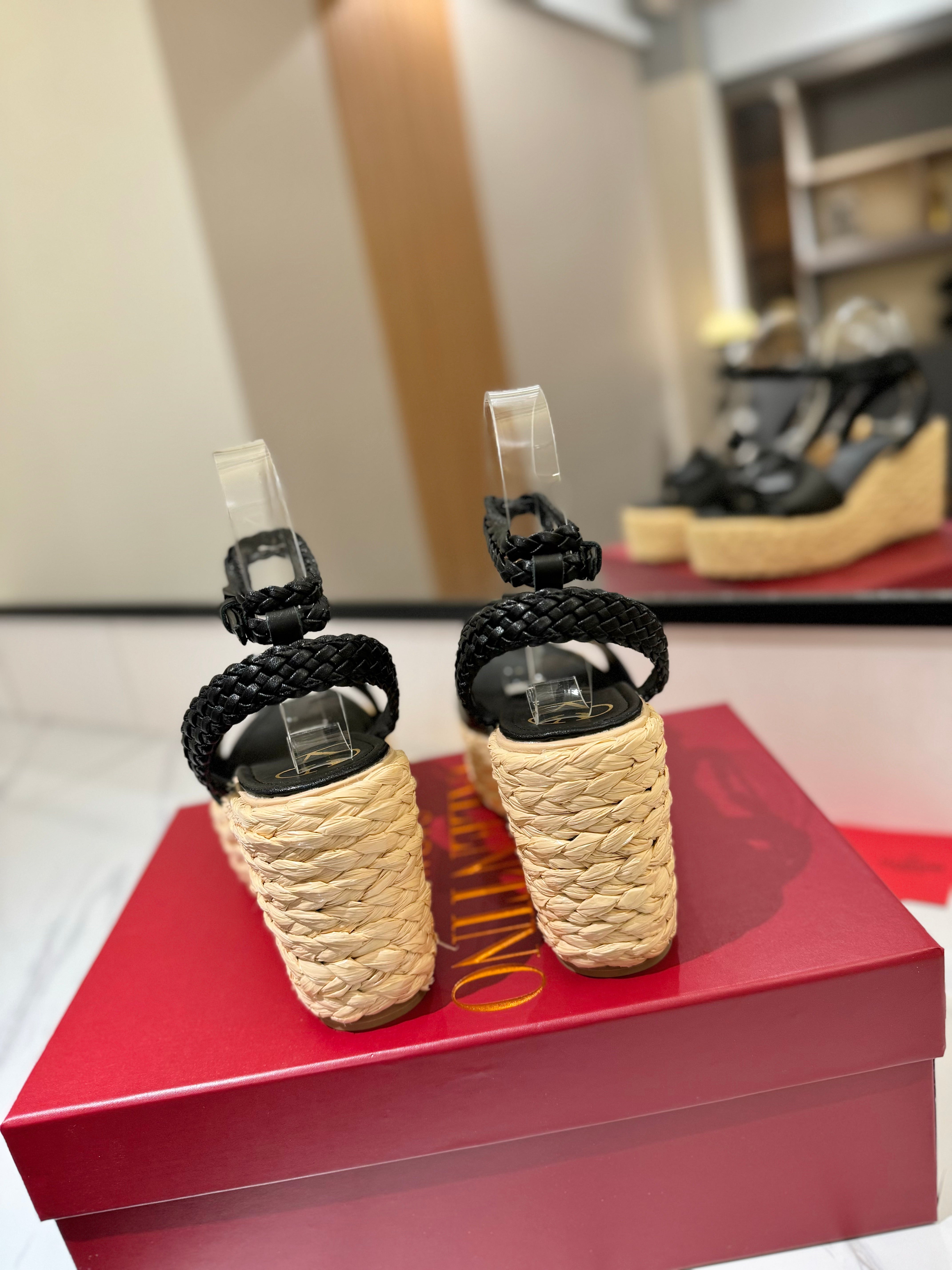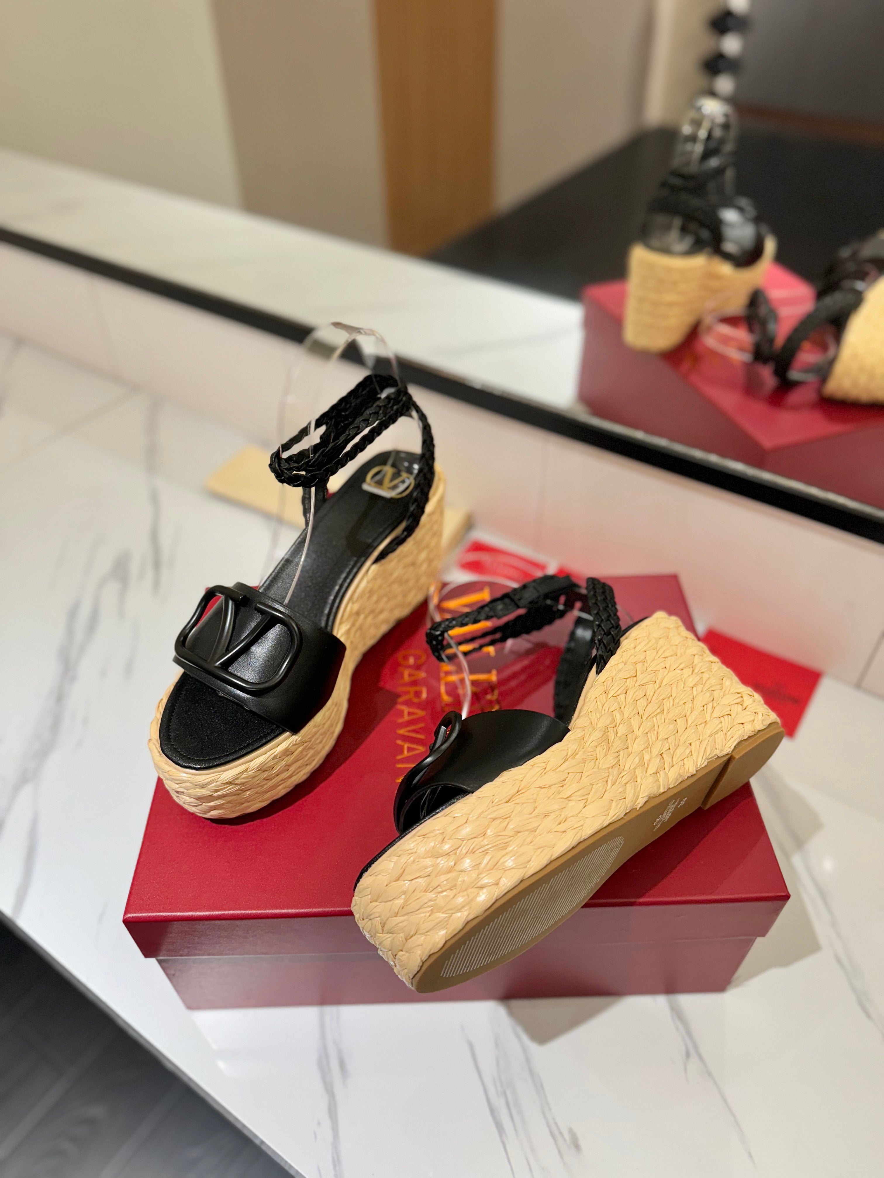 VLTN ESPADRILLE WEDGE SANDALS 25S 90 MM IN BLACK LAMBSKIN STYLE 10