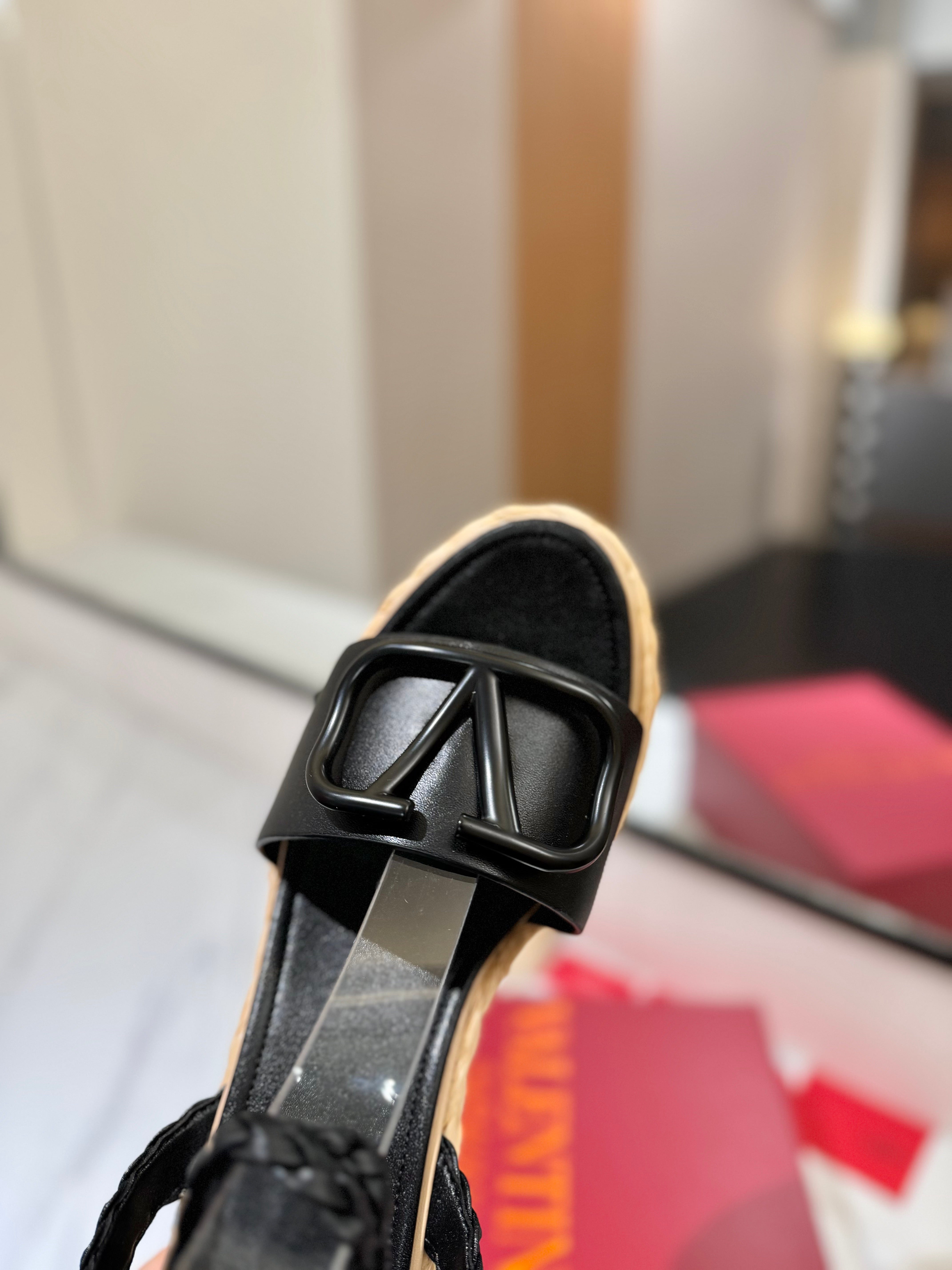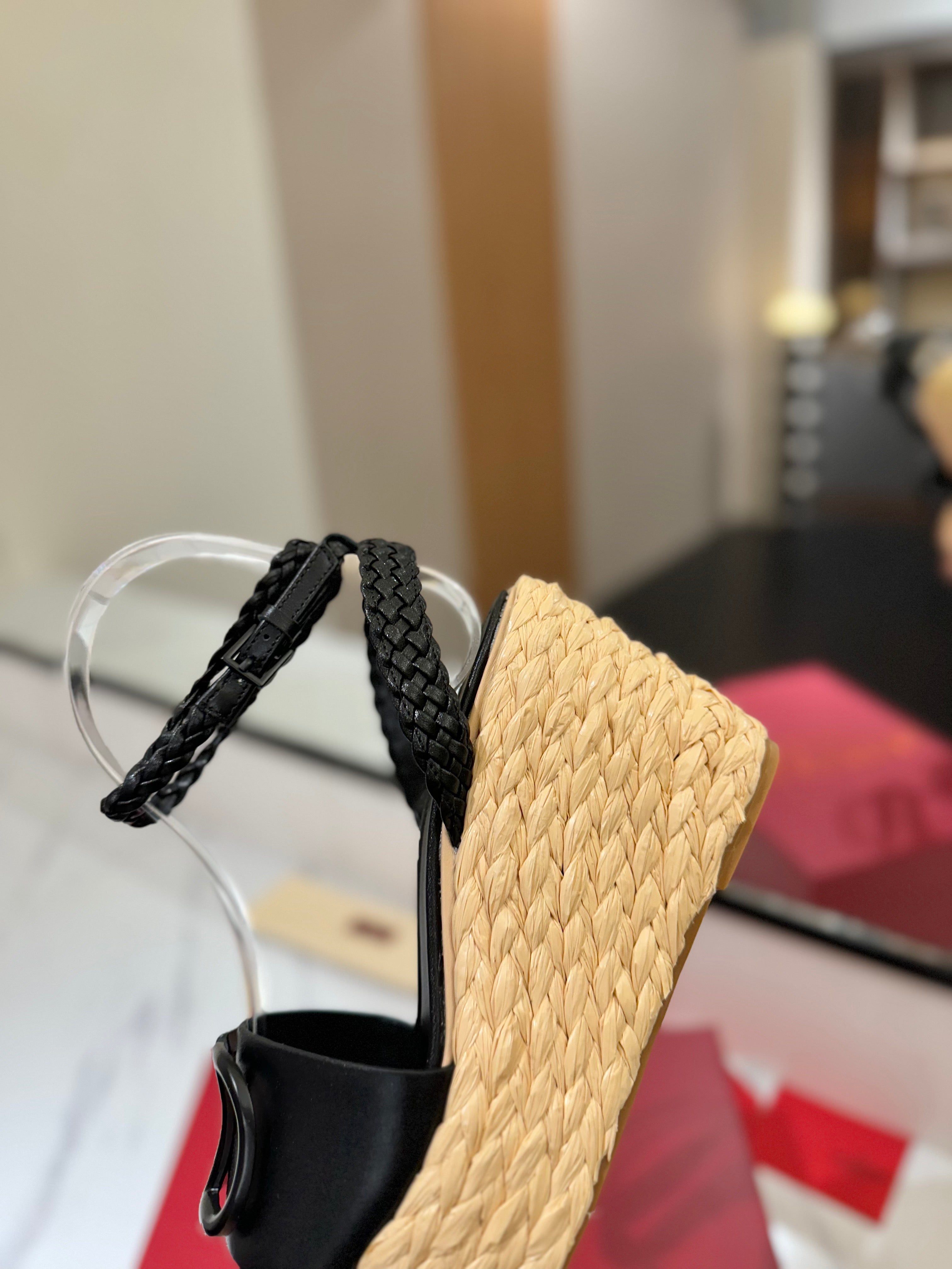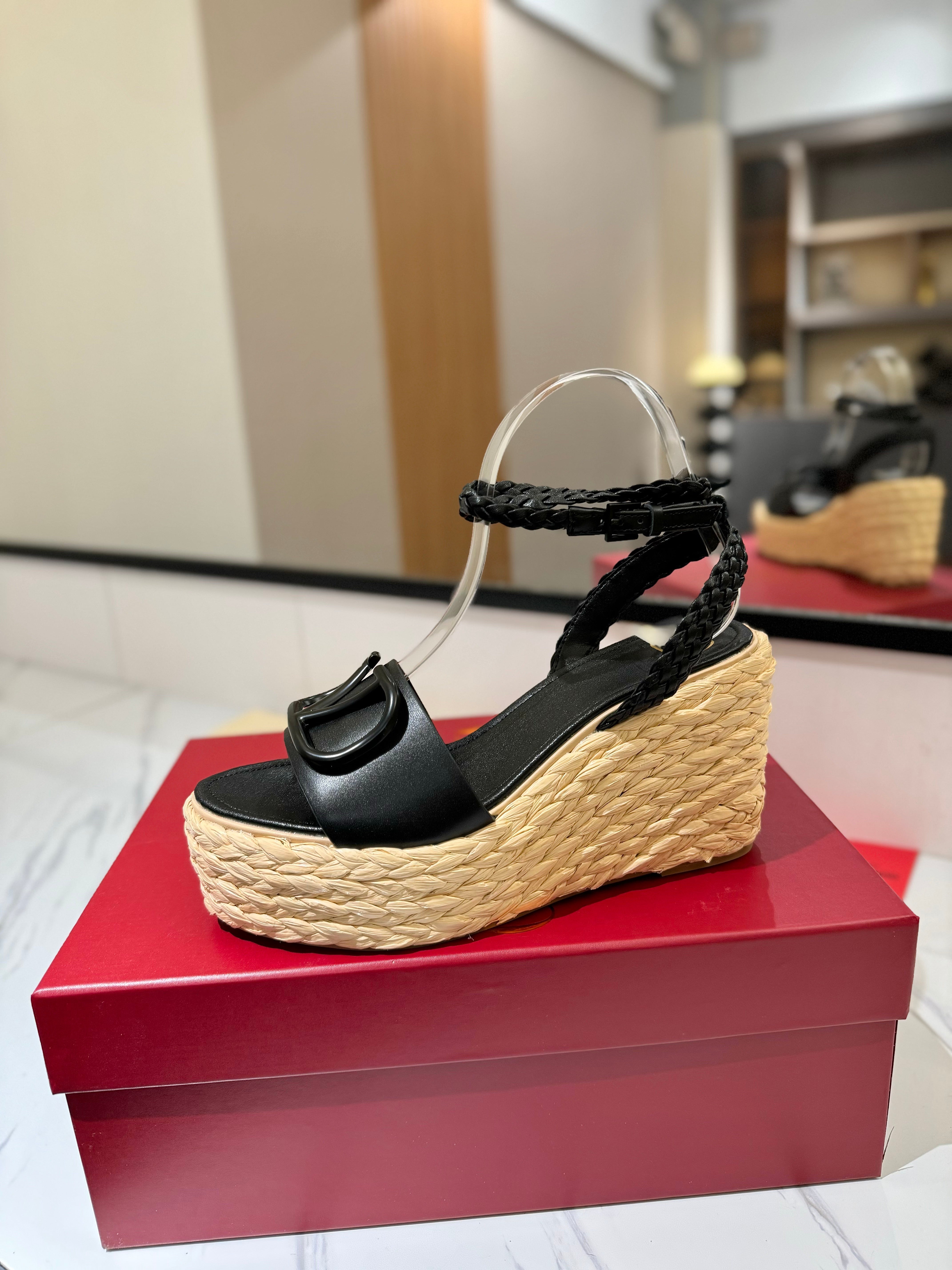 VLTN ESPADRILLE WEDGE SANDALS 25S 90 MM IN BLACK LAMBSKIN STYLE 10