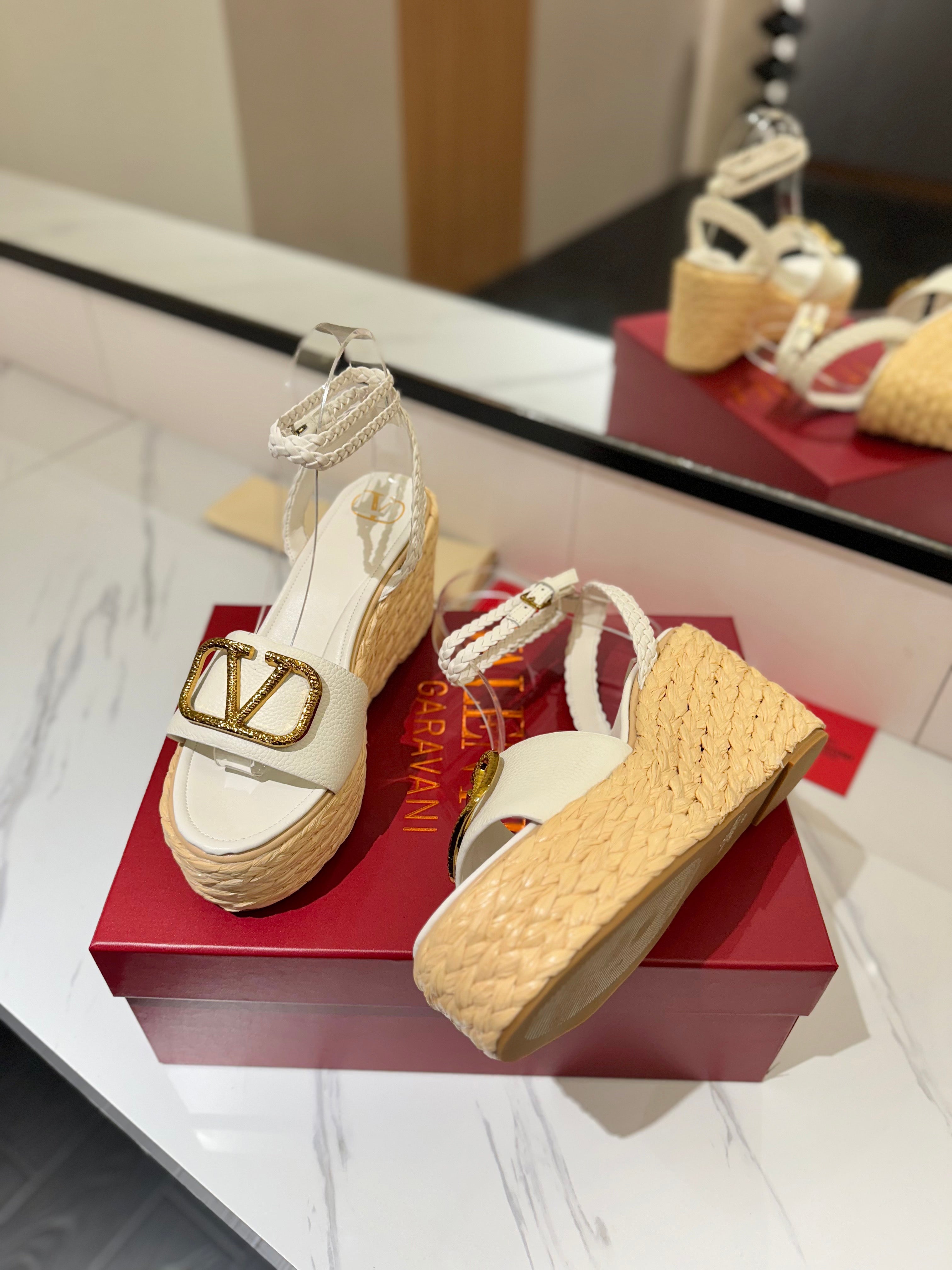 VLTN ESPADRILLE WEDGE SANDALS 25S 90 MM IN WHITE LAMBSKIN STYLE 3