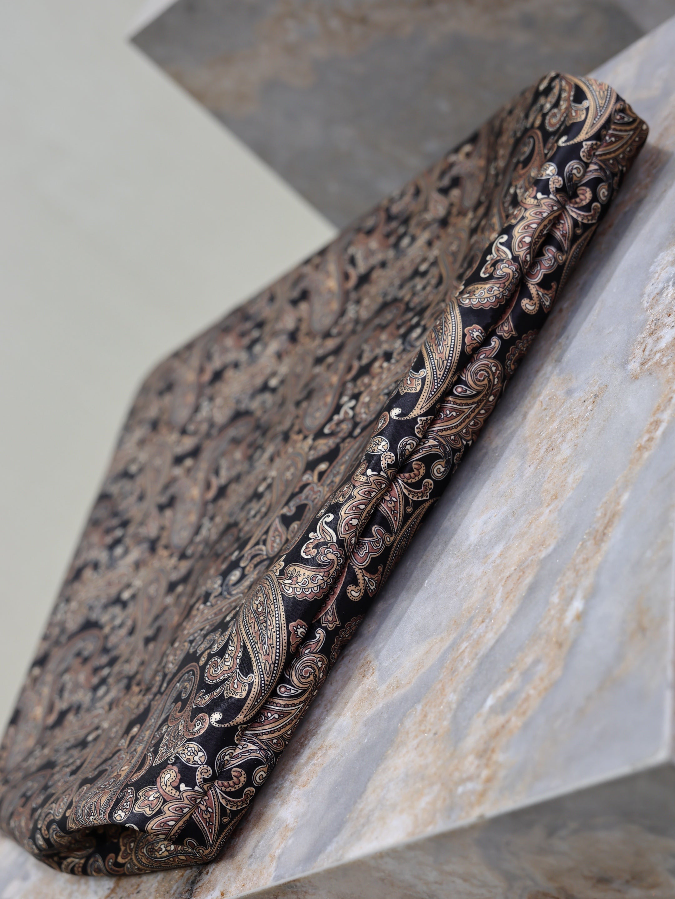 YSL 25S AMALIA 50 IN NAVY MULTICOLOR SILK TWILL GOLD HARDWRE